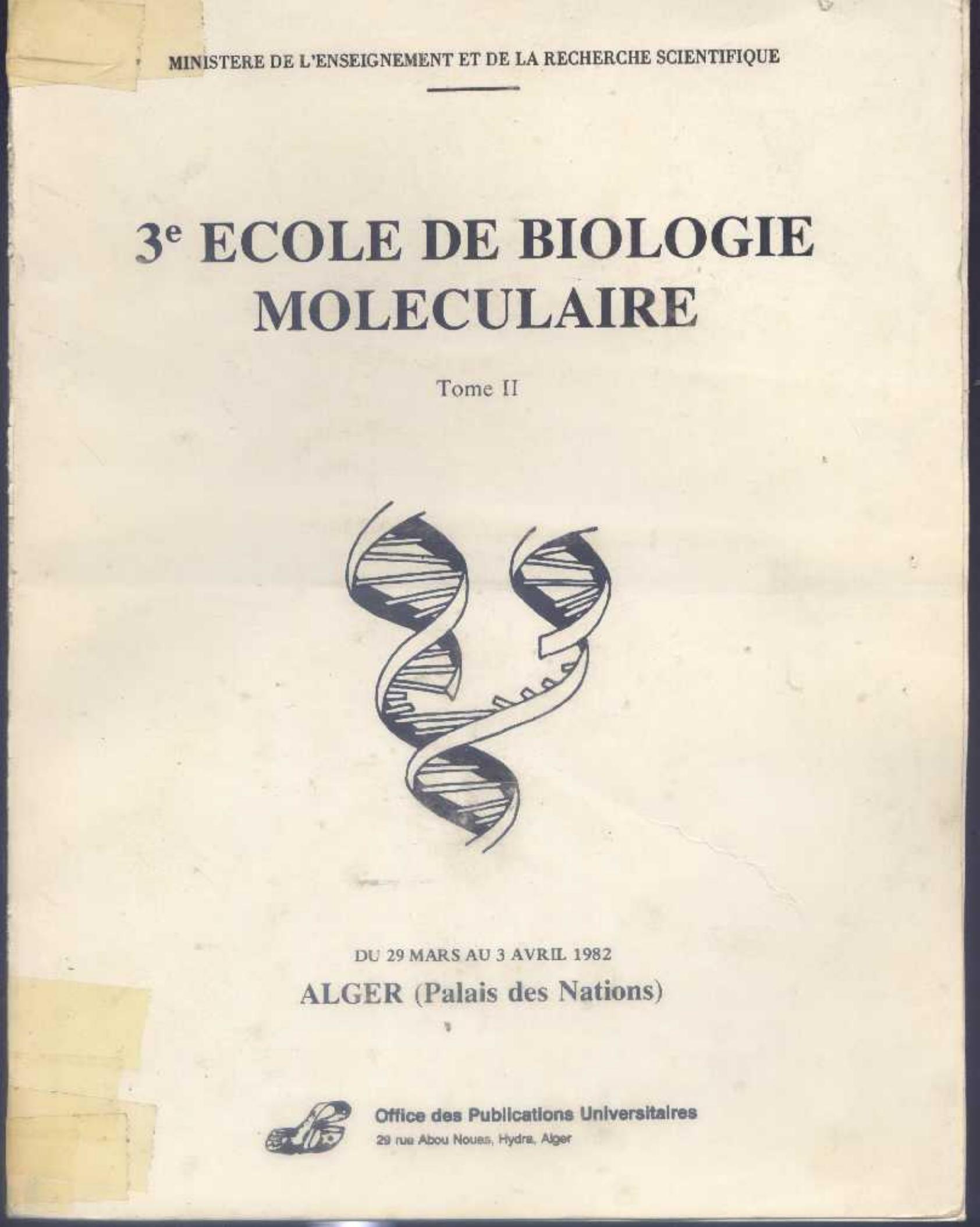 Algérie. Ministère de l'enseignement et de la recherche scientifique (1982). 3ème [Troisième] école de biologie moléculaire. 2 . OPU;