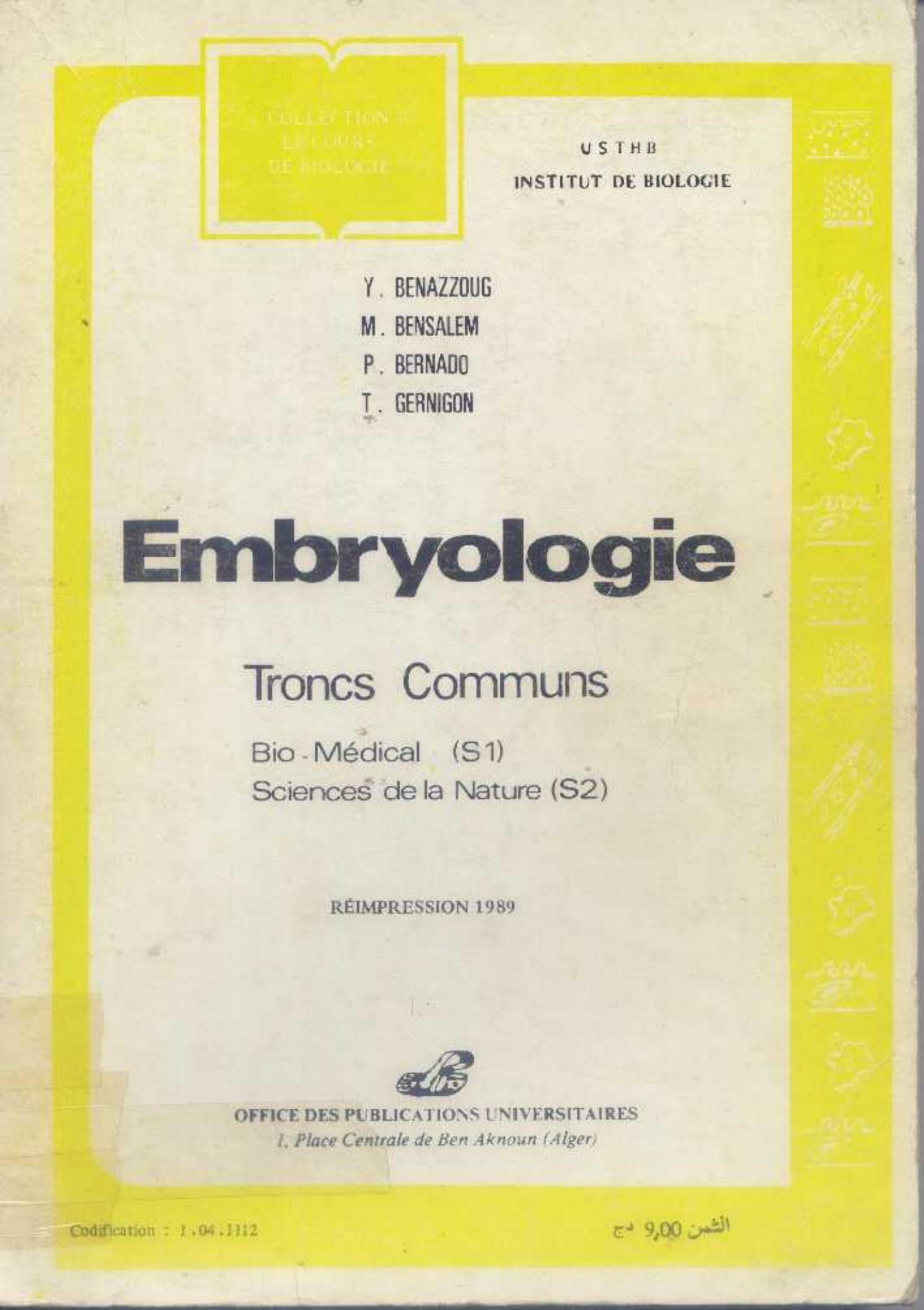 Benazzoug, Y. et al. (1989). Embryologie . OPU;