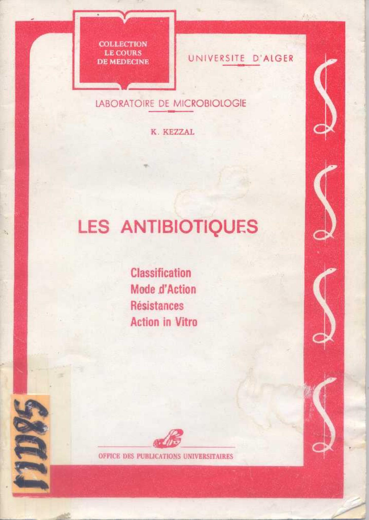 Kezzal, K. & Rahal, K. (1993). Les antibiotiques . OPU;