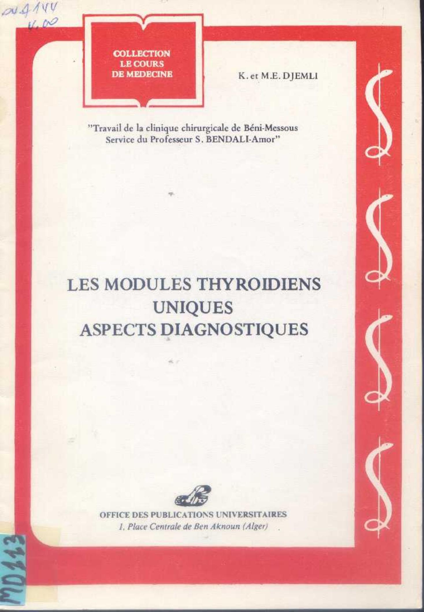 Djemli, K. & Djemli, E. (1985). Les modules thyroïdiens uniques . OPU;