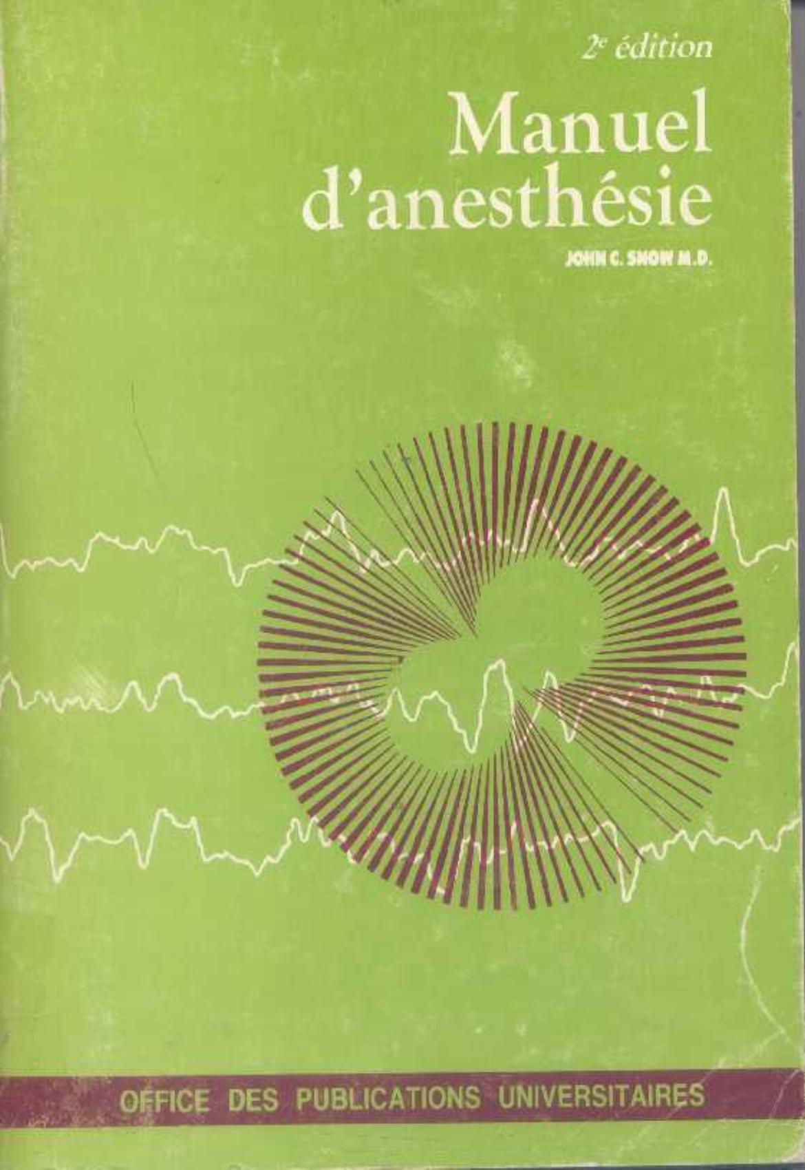 Snow, J. & Montagne, J. (1990). Manuel d'anésthésie (2ème éd.) . OPU;