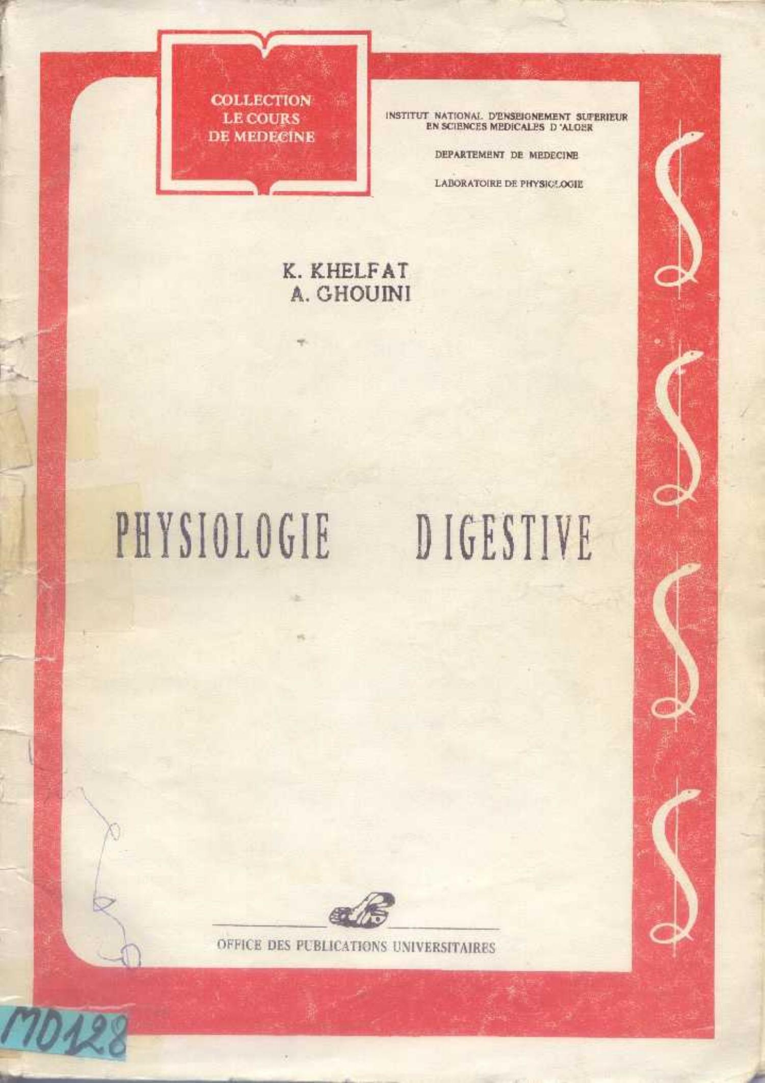 Khelfat, K. & Ghouini, A. (1992). Physiologie digestive . OPU;