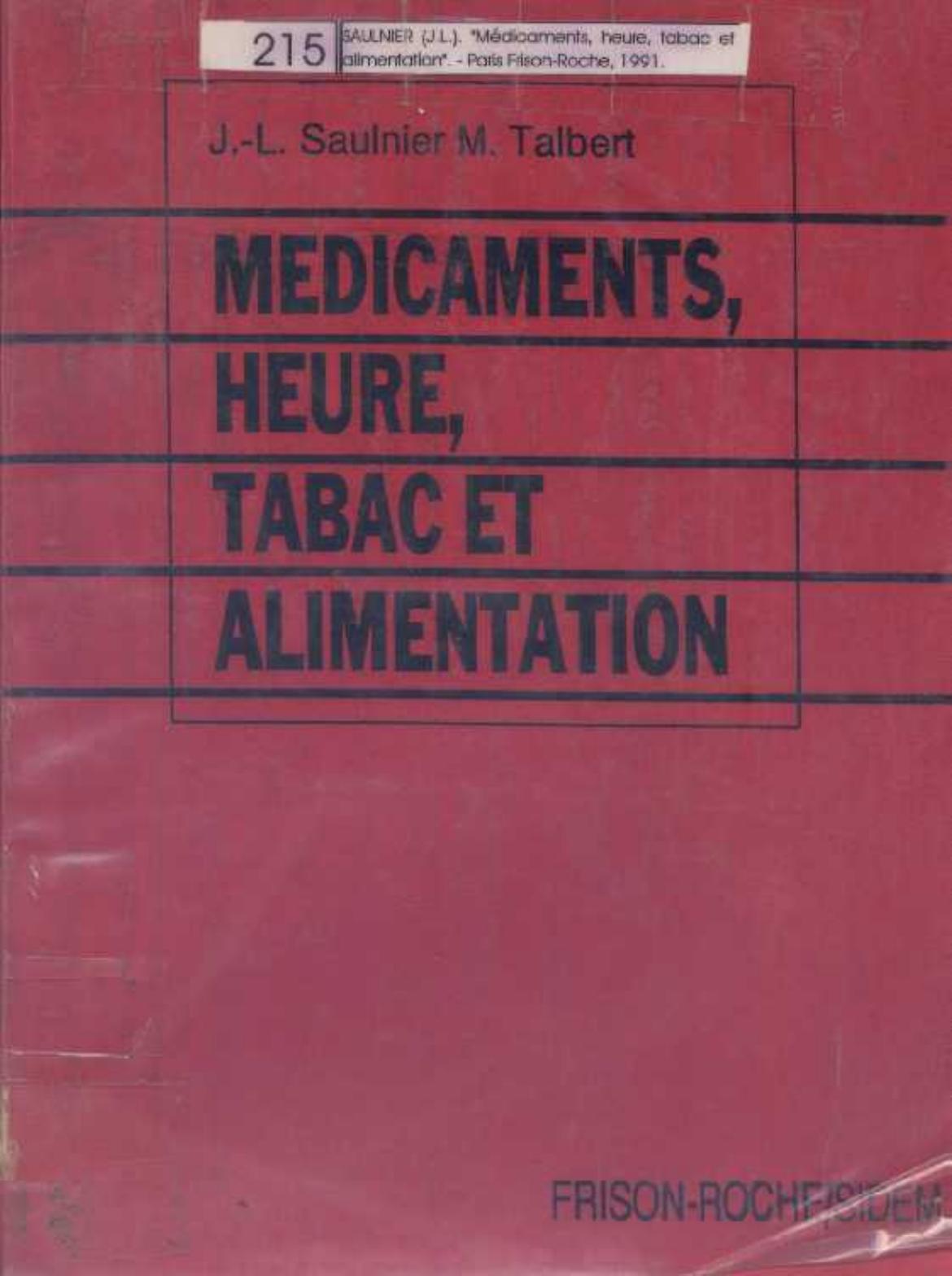 Saulnier, J. & Talbert, M. (1988). Médicaments, heure, tabac et alimentation (2ème éd. rev. et corr.) . Frison-Roche; Sidem;