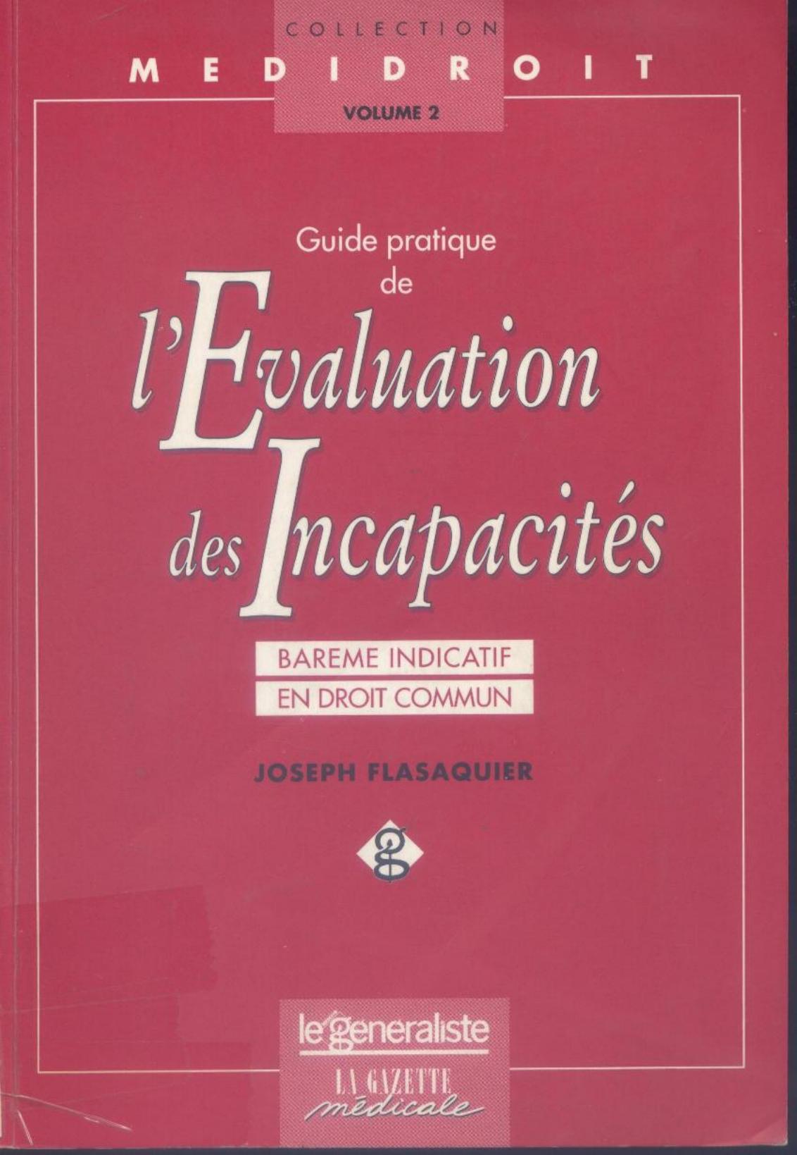 Flasaquier, J. (1996). Guide pratique de l'évaluation des incapacités . La gazette médicale;