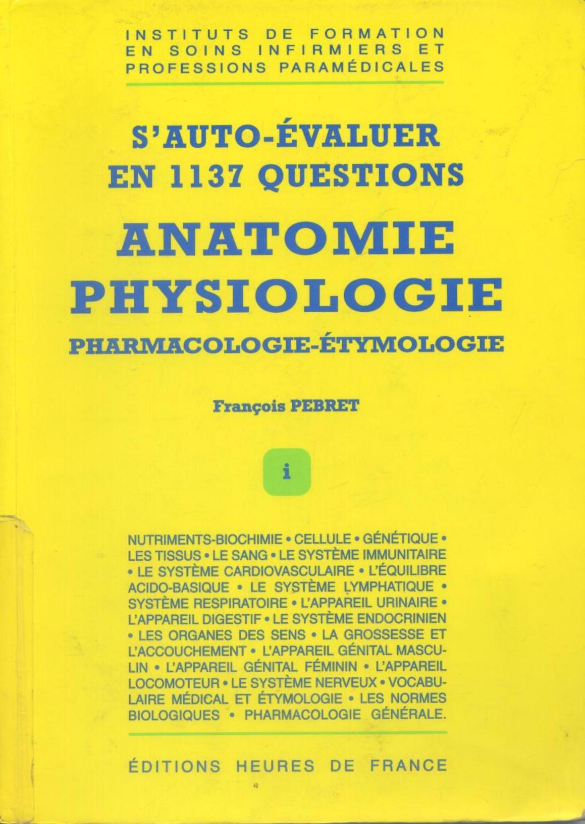Pebret, F. (1998). S'auto-évaluer en 1137 questions anatomie physiologie . Heures de France;