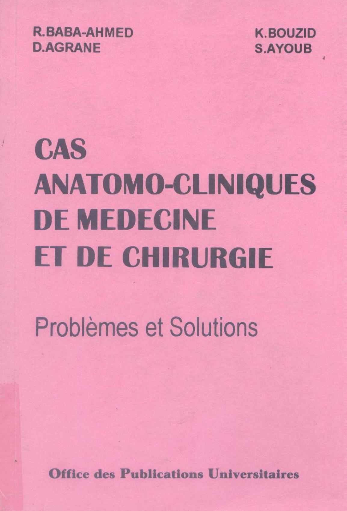 Baba Ahmed, R. et al. (1996). Cas anatomo-cliniques de médecine et de chirurgie . OPU;