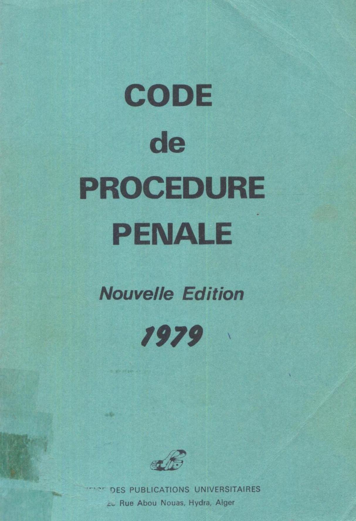Office des publications universitaires (1979). Code de procédure pénale . OPU;