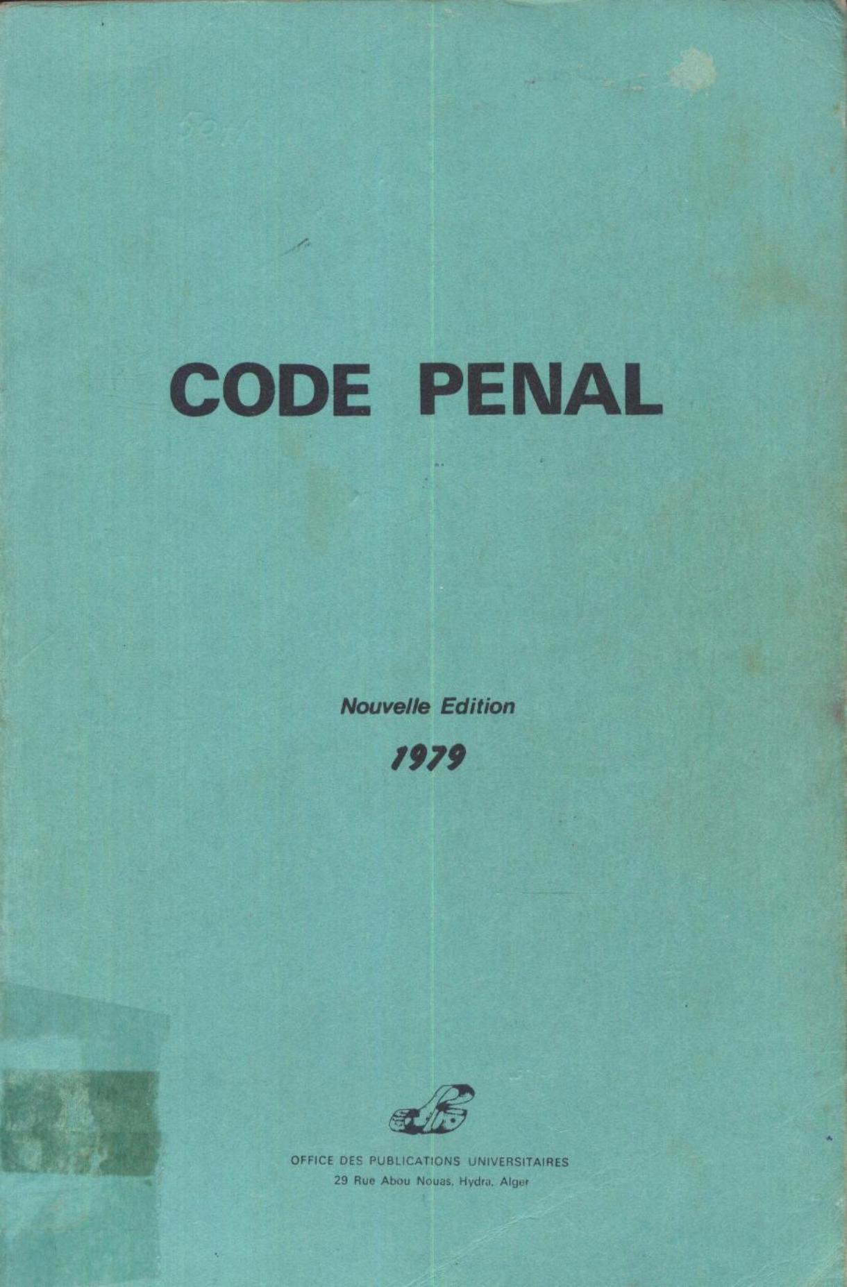 Office des publications universitaires (1979). Code pénal . OPU;