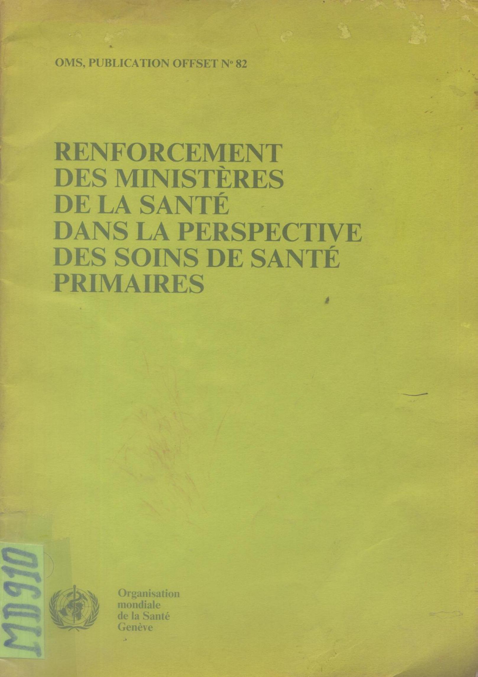 Organisation mondiale de la santé (1985). Renforcement des ministères de la santé dans la perspective des soins de santé primaires . OMS;