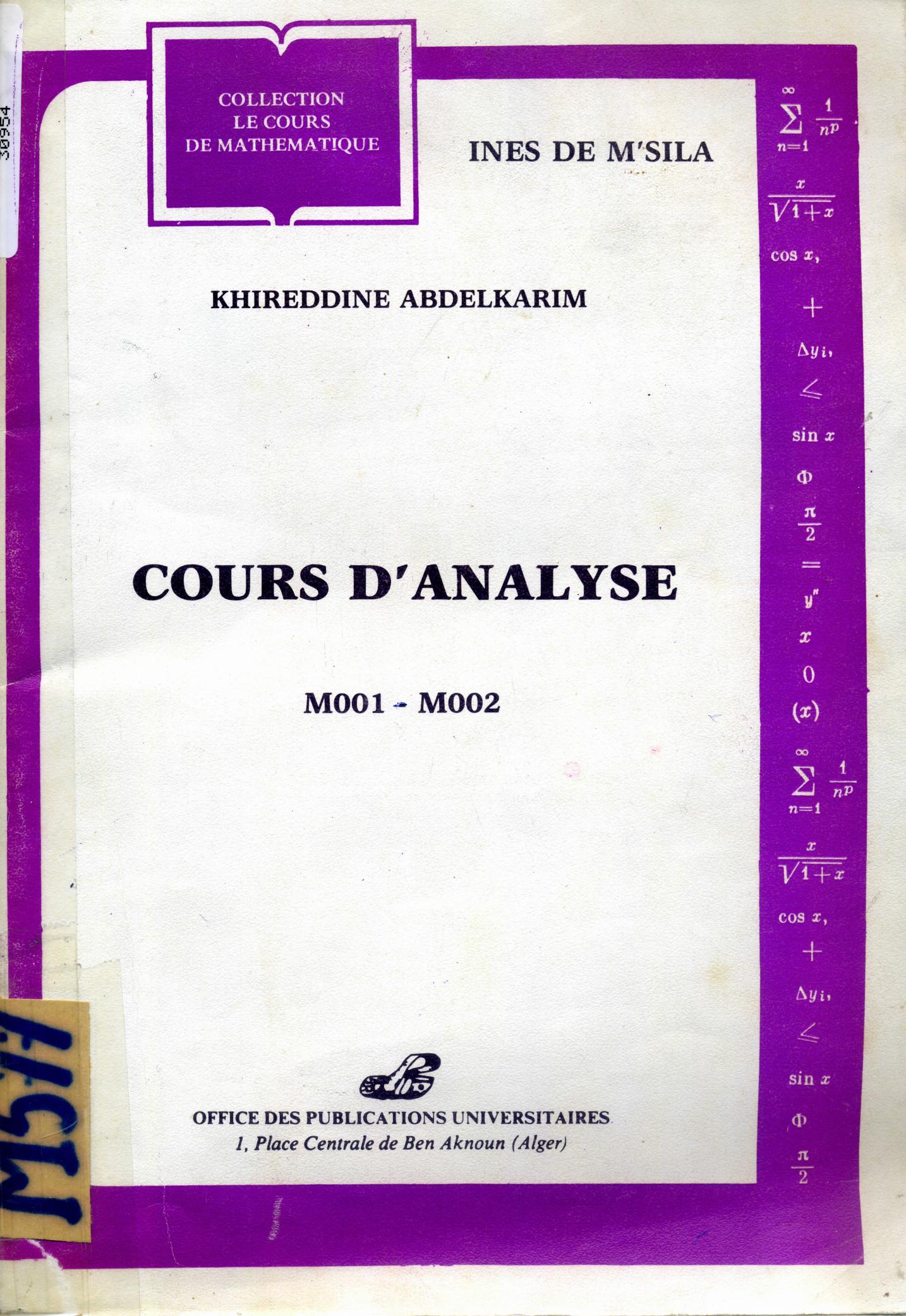 Abdelkarim, K. ([cop.1988]). Cours d'analyse : M001 - M002 . OPU;