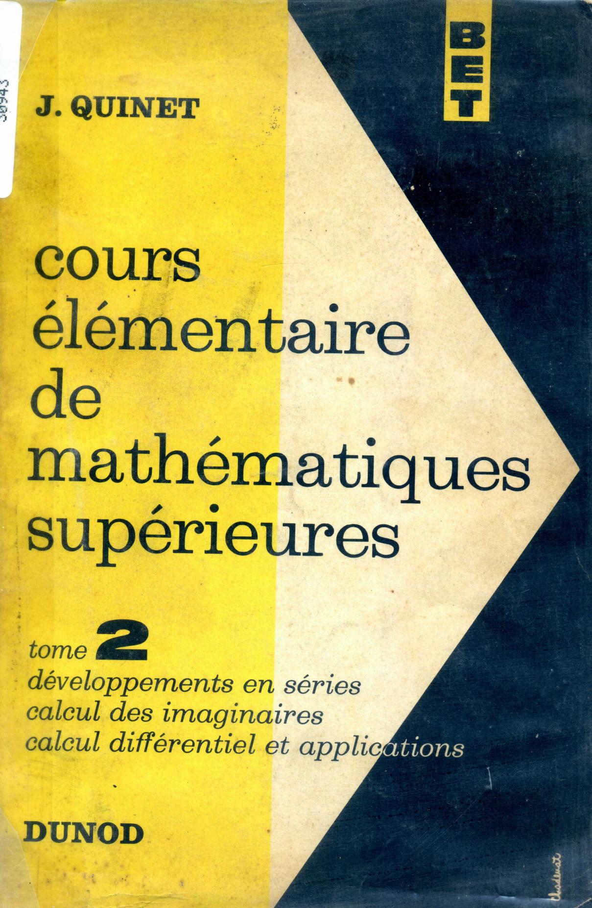Quinet, J. (1962). Cours élémentaire de mathématiques supérieures : calcul differentiel et intégral et géométrie analytique . 2, Développement en séries, calcul des imaginaires... (3è éd) . Dunod;