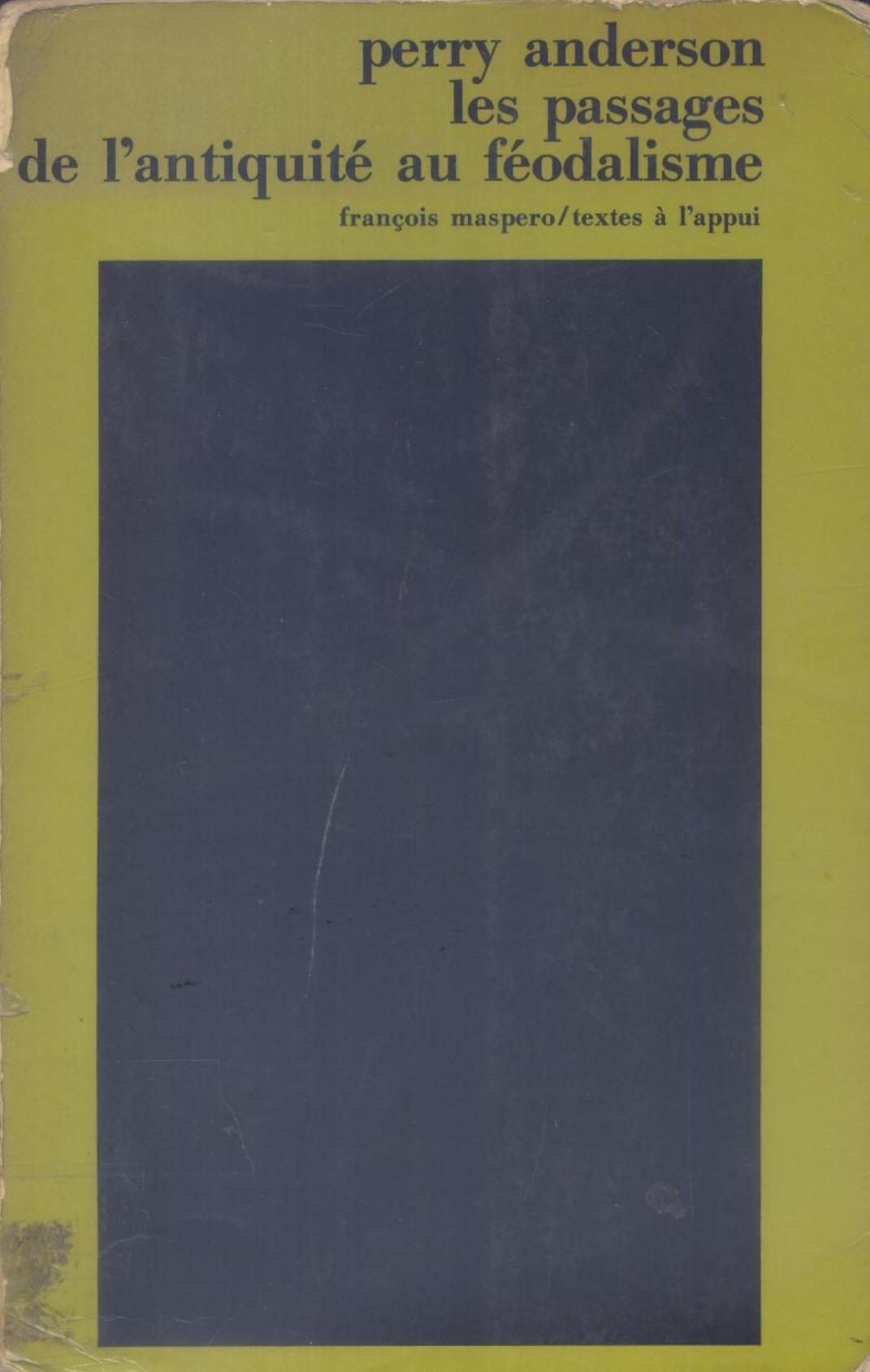 Anderson, P. & Bouveret, Y. (1977). Les Passages de l'antiquité au féodalisme . Maspéro;