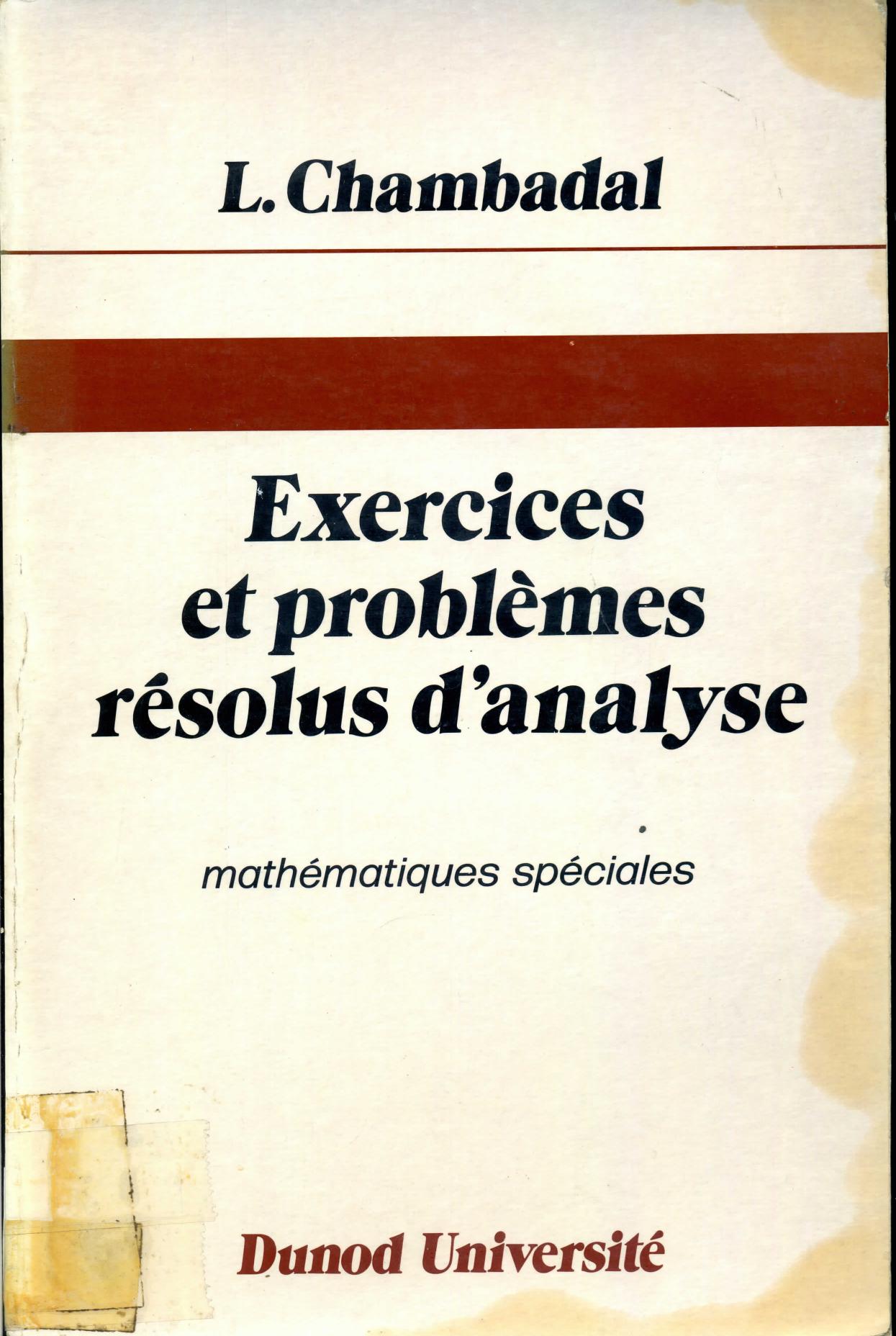 Chambadal, L. (1973). Exercices et problèmes résolus d'analyse . Dunod;