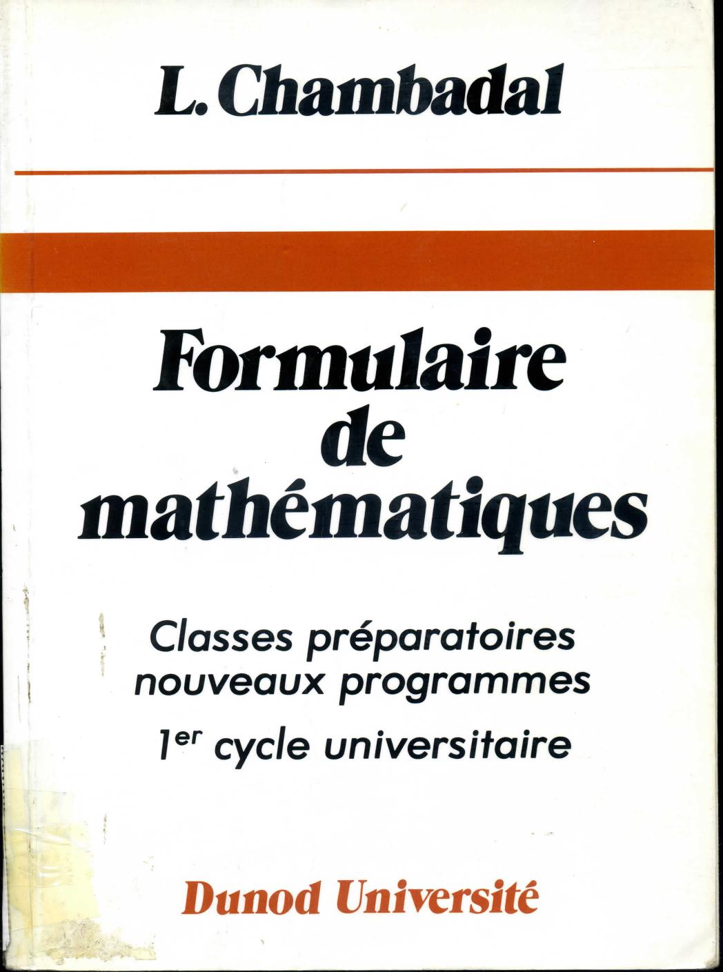 Chambadal, L. (1985). Formulaire de mathématiques (3è éd) . Dunod;
