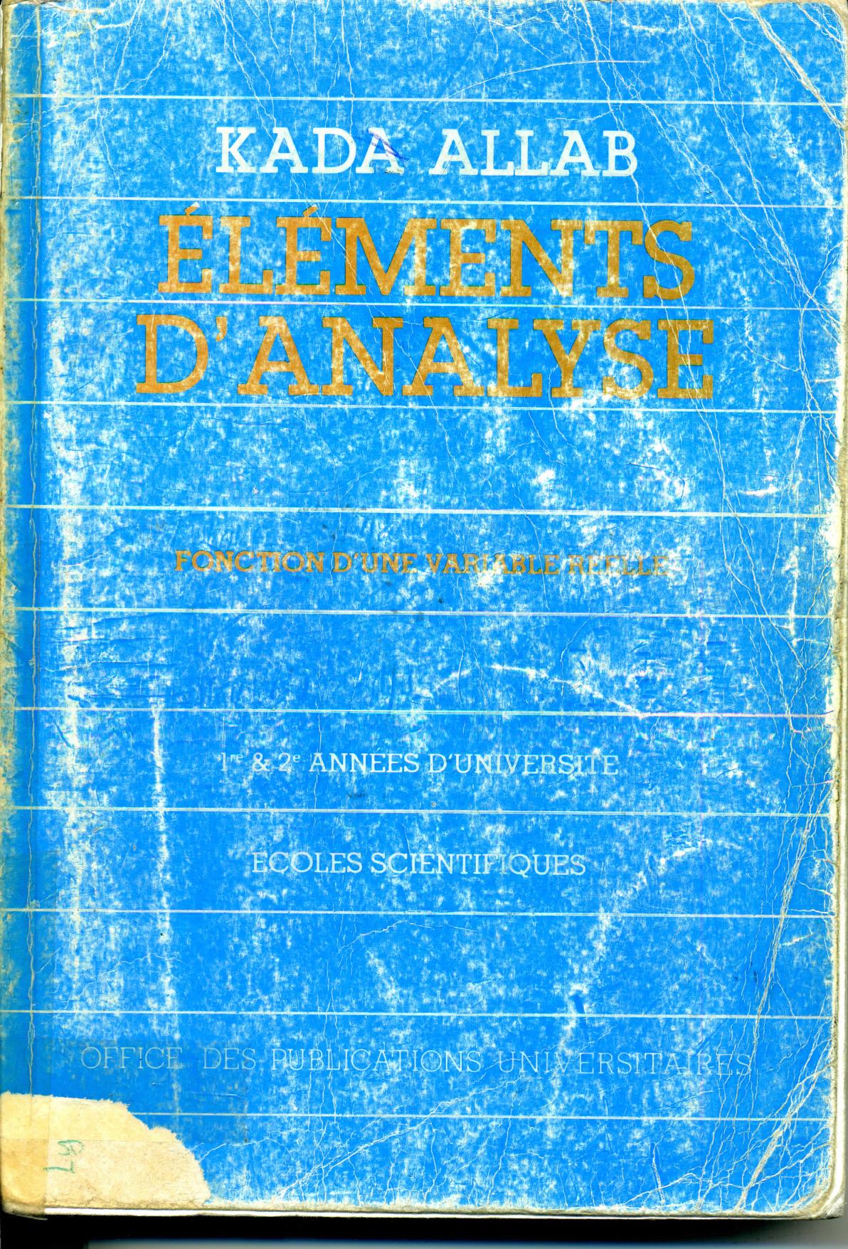 Allab, K. (1993). Eléments d'analyse : fonction d'une variable réelle : 1ère et 2ème année d'université, écoles scientifiques . OPU;