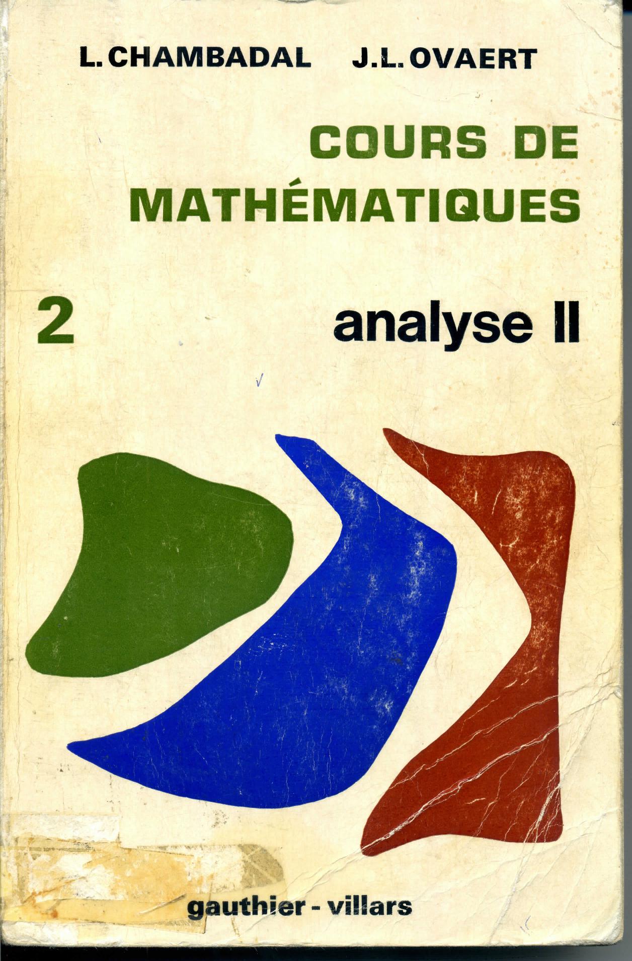 Chambadal, L. & Ovaert, J. (1972). Cours de mathématiques .2, Analyse 2 . Gauthier-Villars;