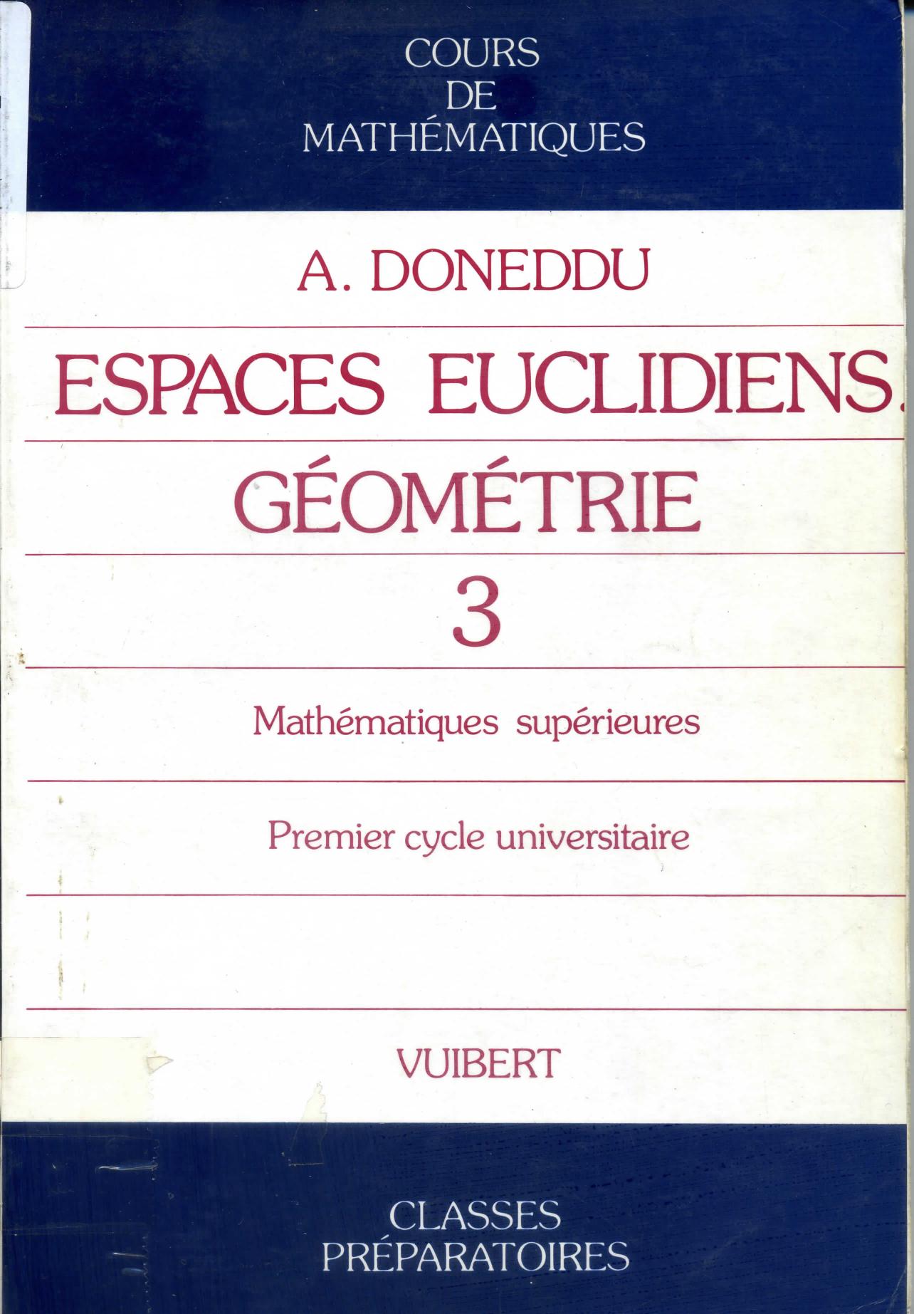 Doneddu, A. (1984). Cours de mathématiques .3, Espaces euclidiens, géométrie . Vuibert;