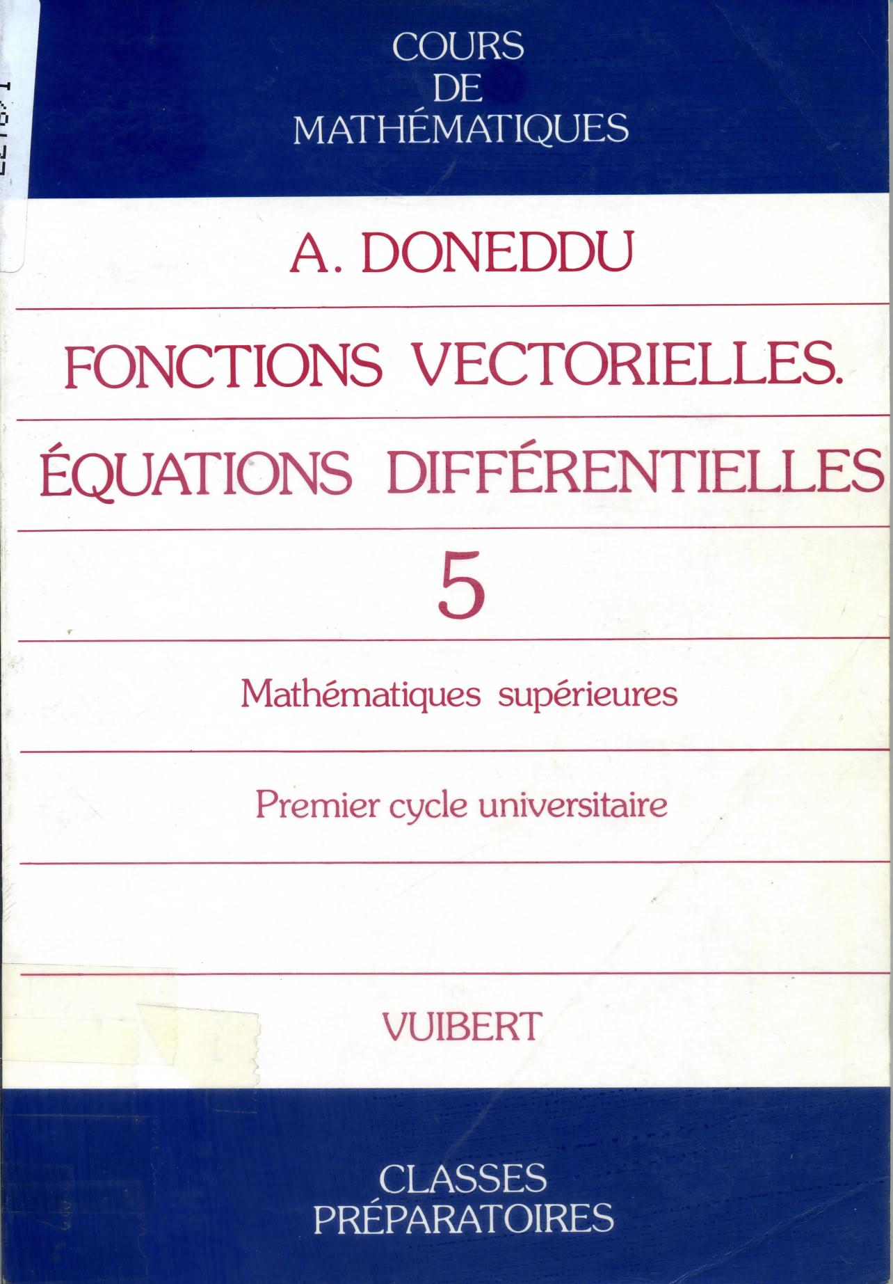 Doneddu, A. (1984). Cours de mathématiques .5, Fonctions vectorielles, équations différentielles . Vuibert;