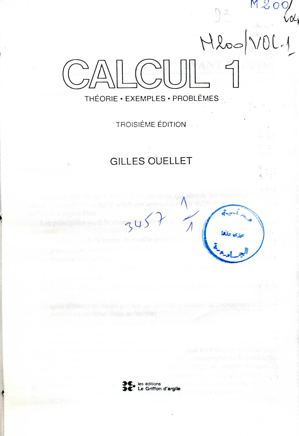 Ouellet, G. (s.d.). Calcul 1 : théorie, exemples, problèmes. 1 (3ème éd) . Le Griffon d'argile;