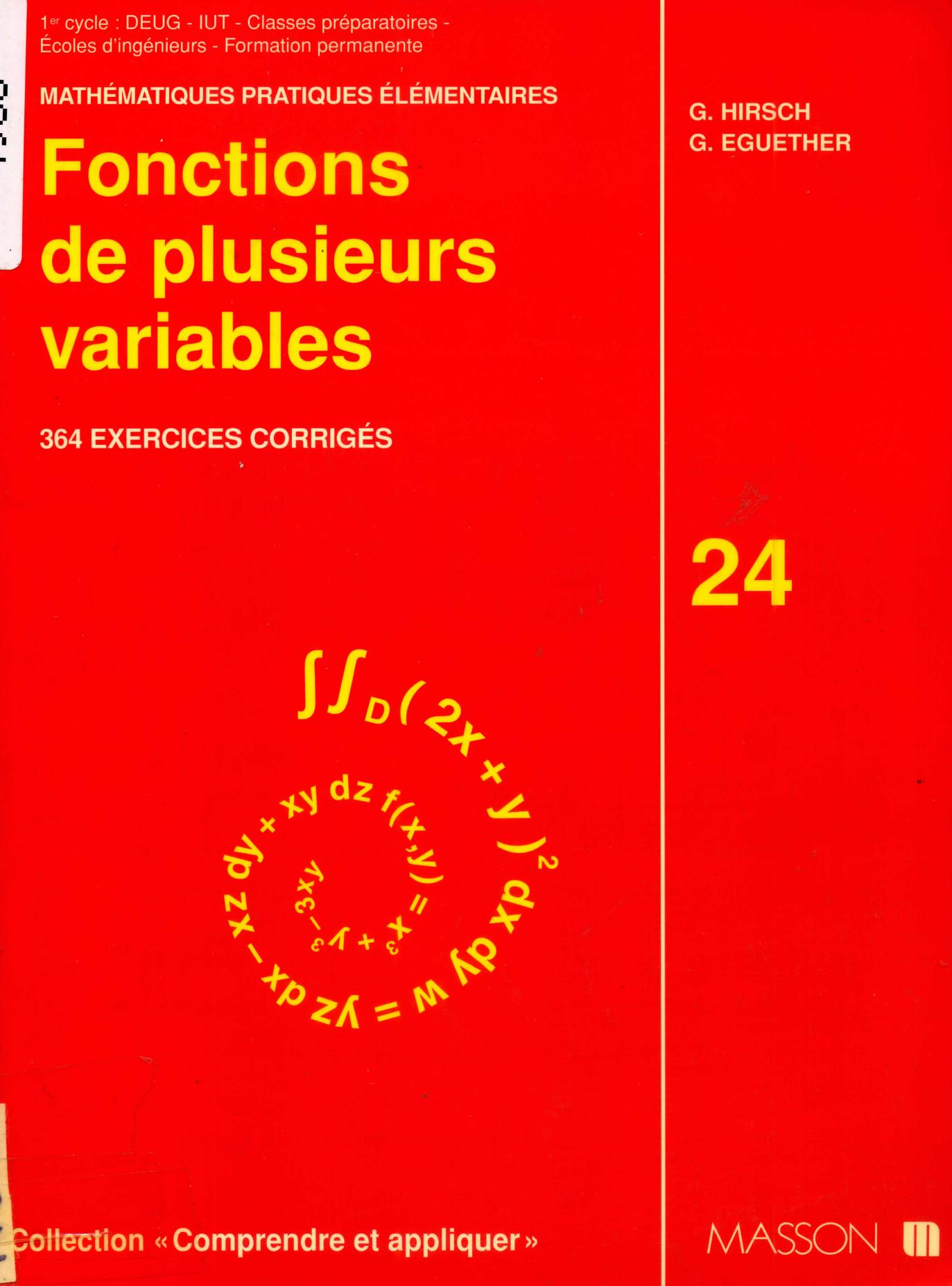 Hirsch, G. & Eguether, G. (1994). Fonctions de plusieurs variables . Masson;