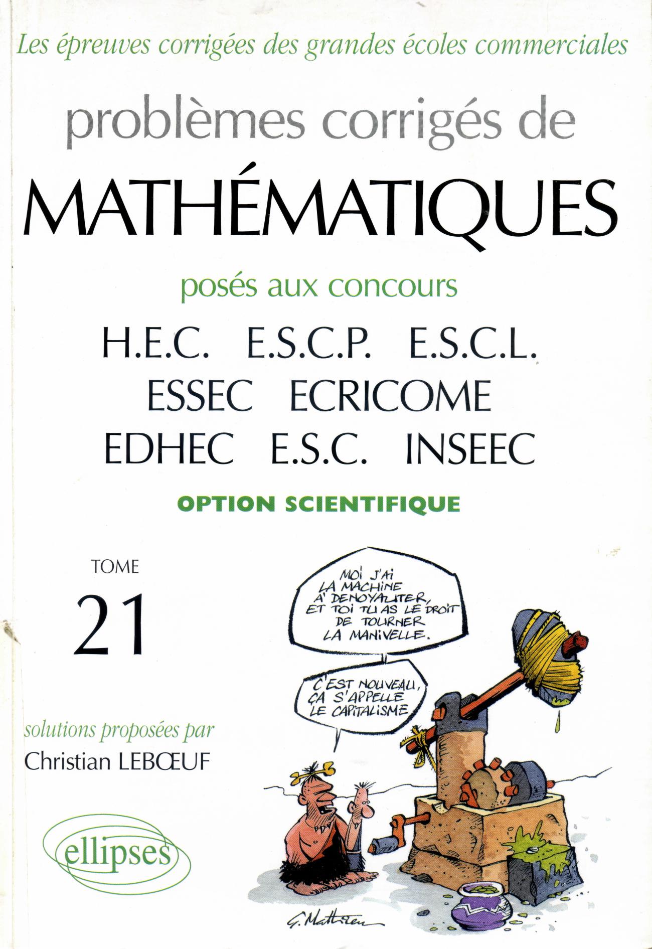 Problèmes corrigés de mathématiques posés aux concours HEC, ESCP, ESCL, ESSEC, ECRICOME, EDHEC, ESC, INSEEC