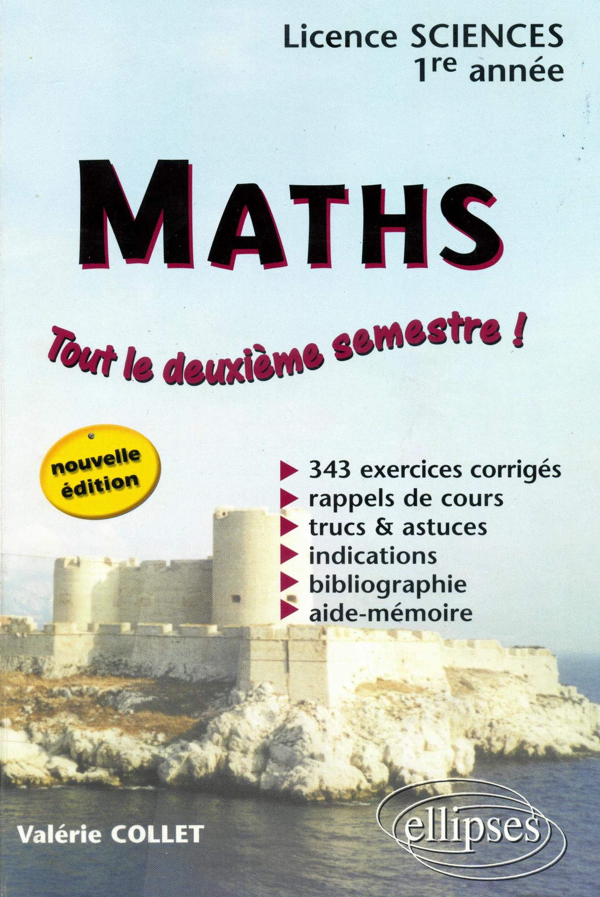 Maths. 2, Tout le deuxième semestre ! : licence sciences 1re année : 343 exercices corrigés, rappels de cours, trucs [et] astuces, indications, bibliographie