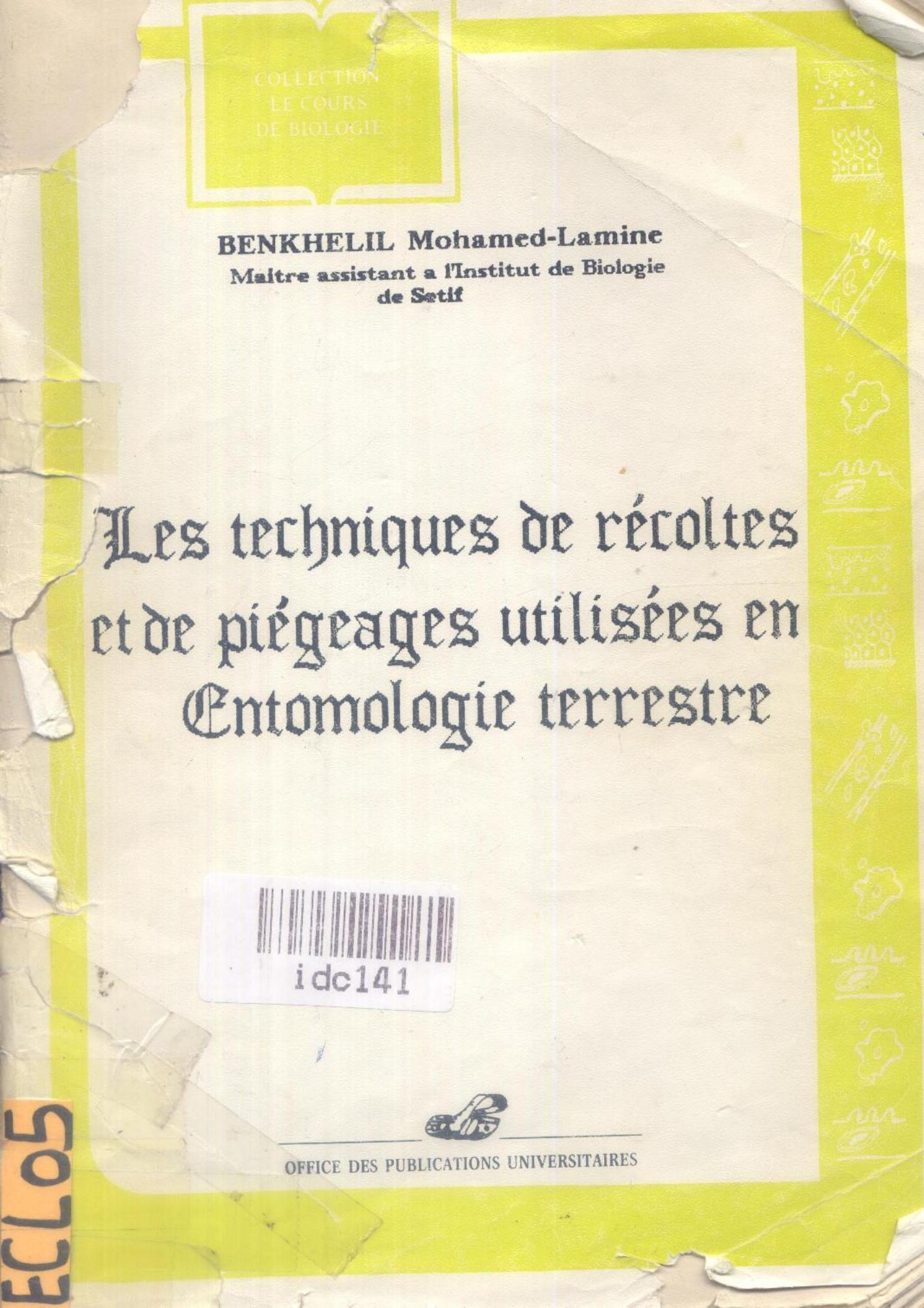 Benkhelil, M. (1992). Les Techniques de récoltes et de piégeages utilisées en entomologie terrestre . OPU;