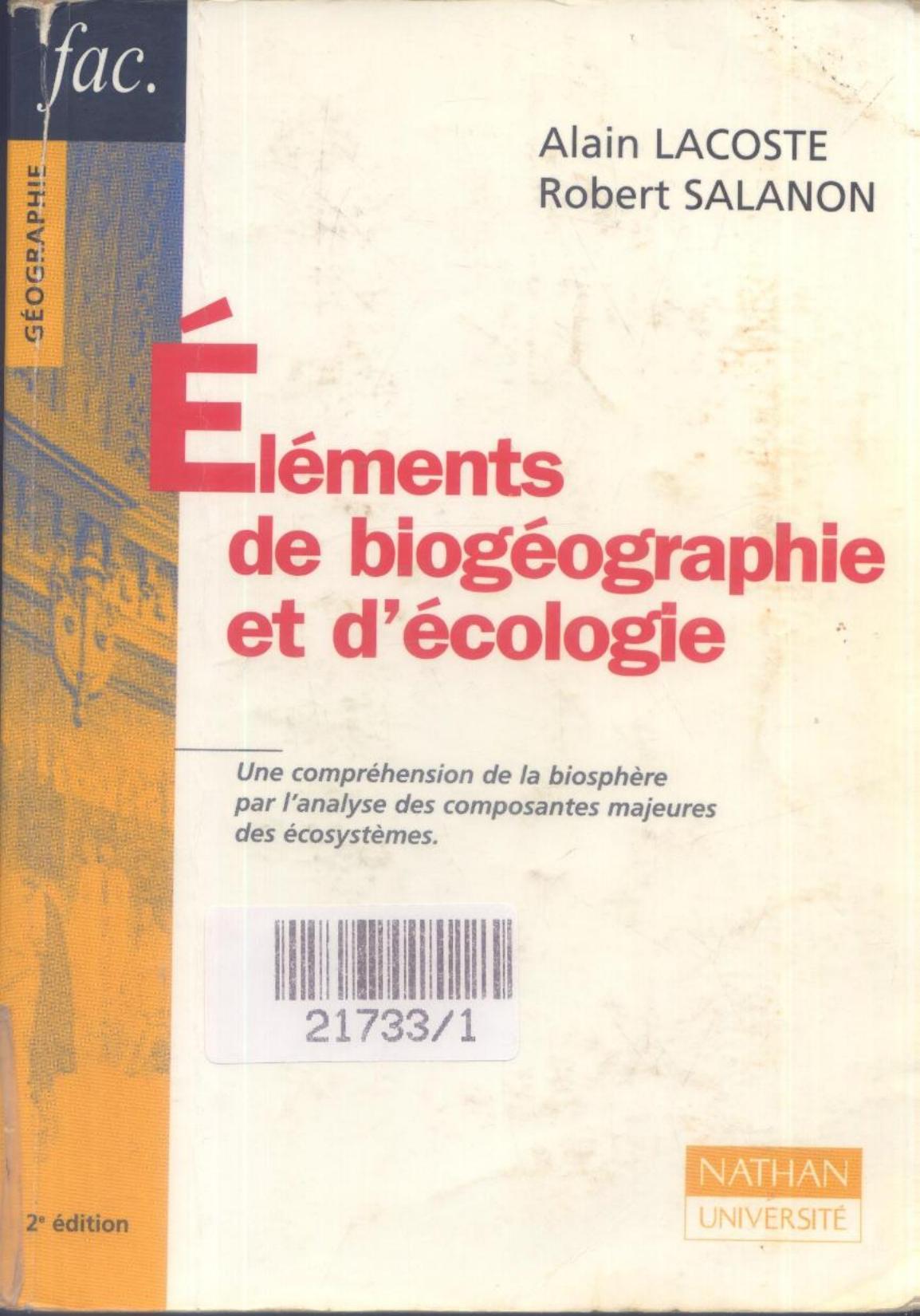 Lacoste, A. & Salanon, R. (1999). Eléments de biogéographie et d'écologie (2è éd. rev. et augm.) . Nathan;