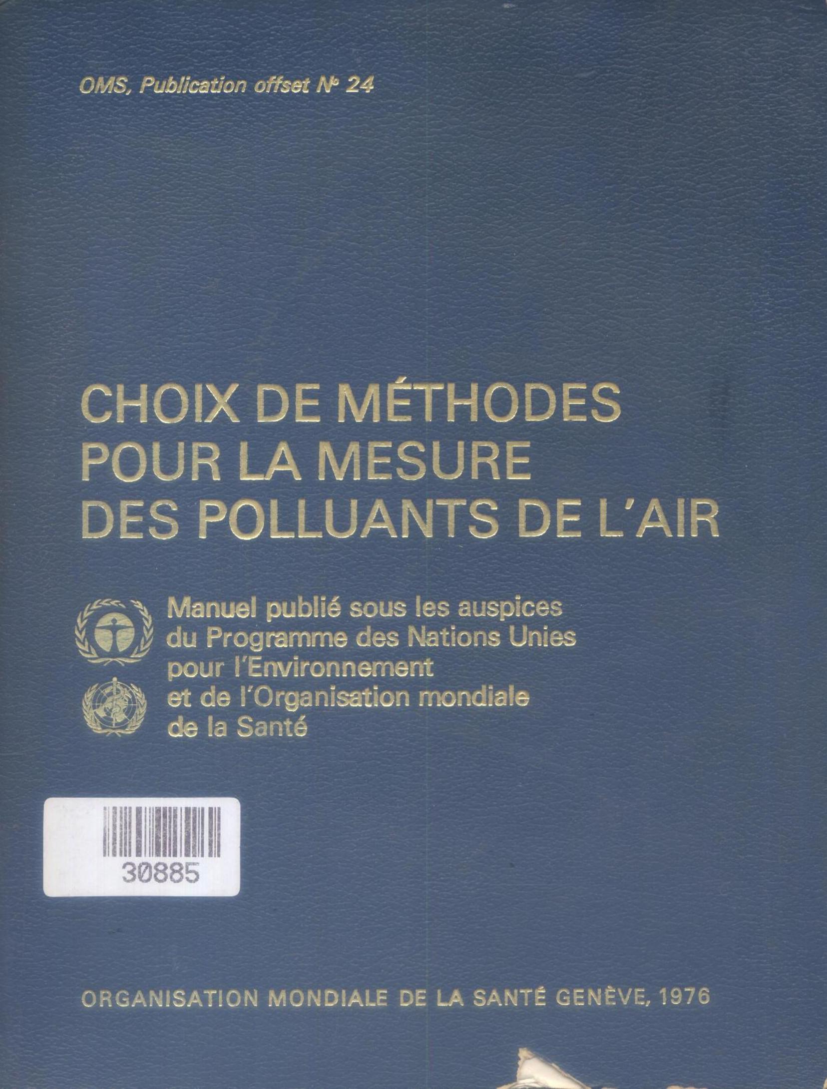 Organisation mondiale de la santé (1976). Choix de méthodes pour la mesure des polluants de l'air . OMS;