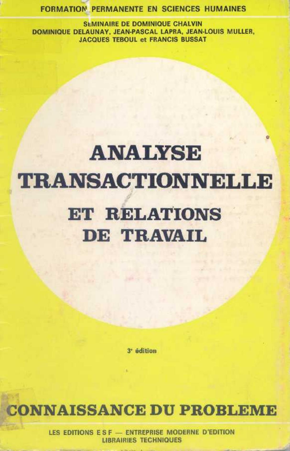 Chalvin, D. et al. (1982). Analyse transactionnelle et relations de travail (3ème éd) . ESF;