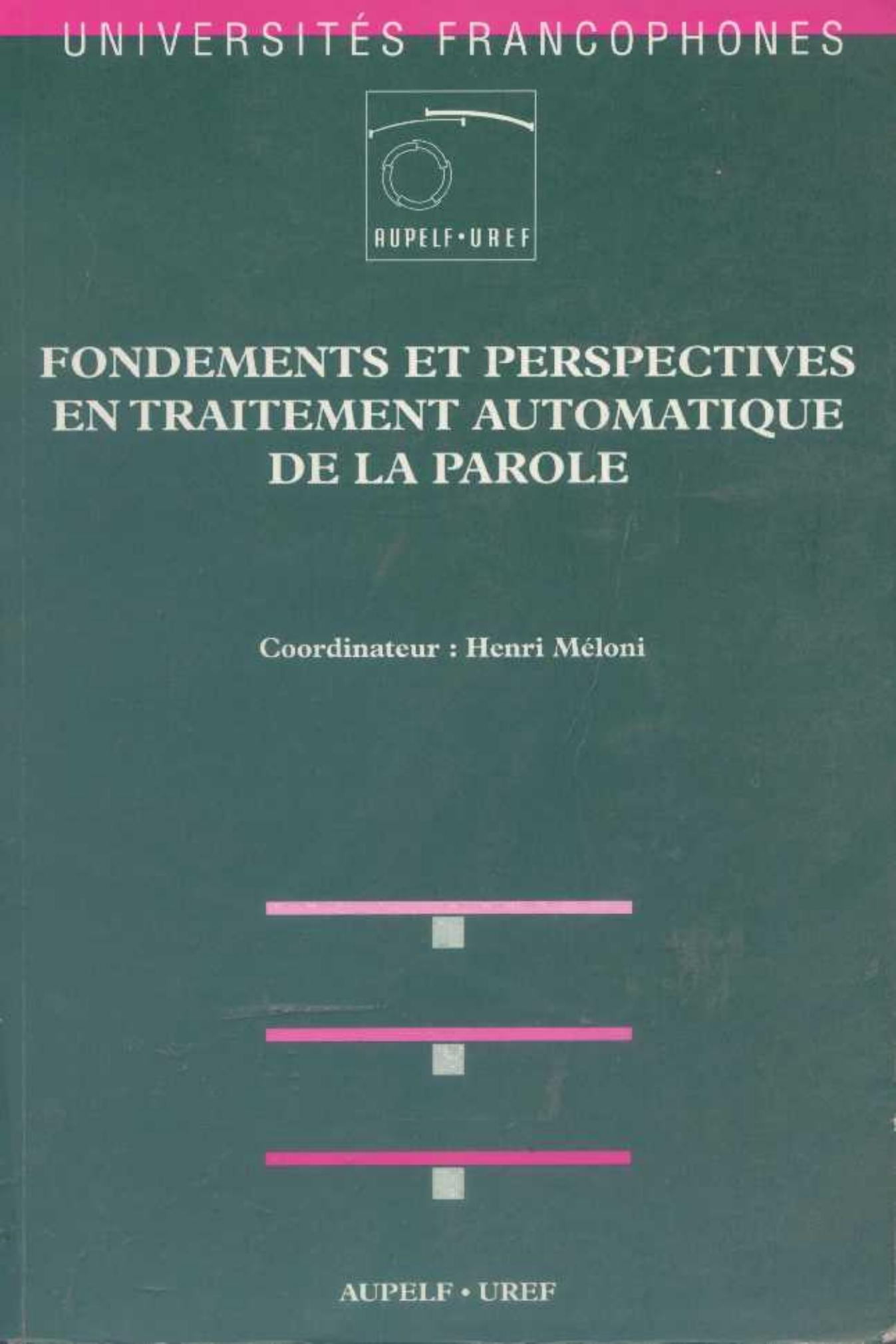 Méloni, H. (1996). Fondements et perspectives en traitement automatique de la parole . AUPELF-UREF;