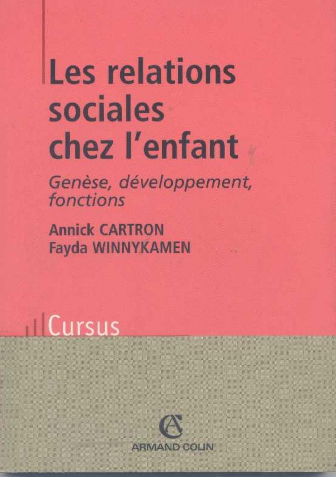 Cartron, A. & Winnykamen, F. (2004). Les Relations sociales chez l'enfant (2ème éd) . Arman Colin;