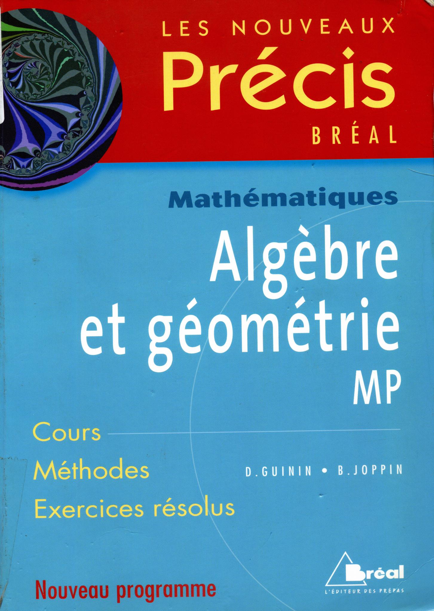 Guinin, D. & Joppin, B. (2004). Algèbre et géométrie MP : cours, méthode, exercices résolus . Bréal;