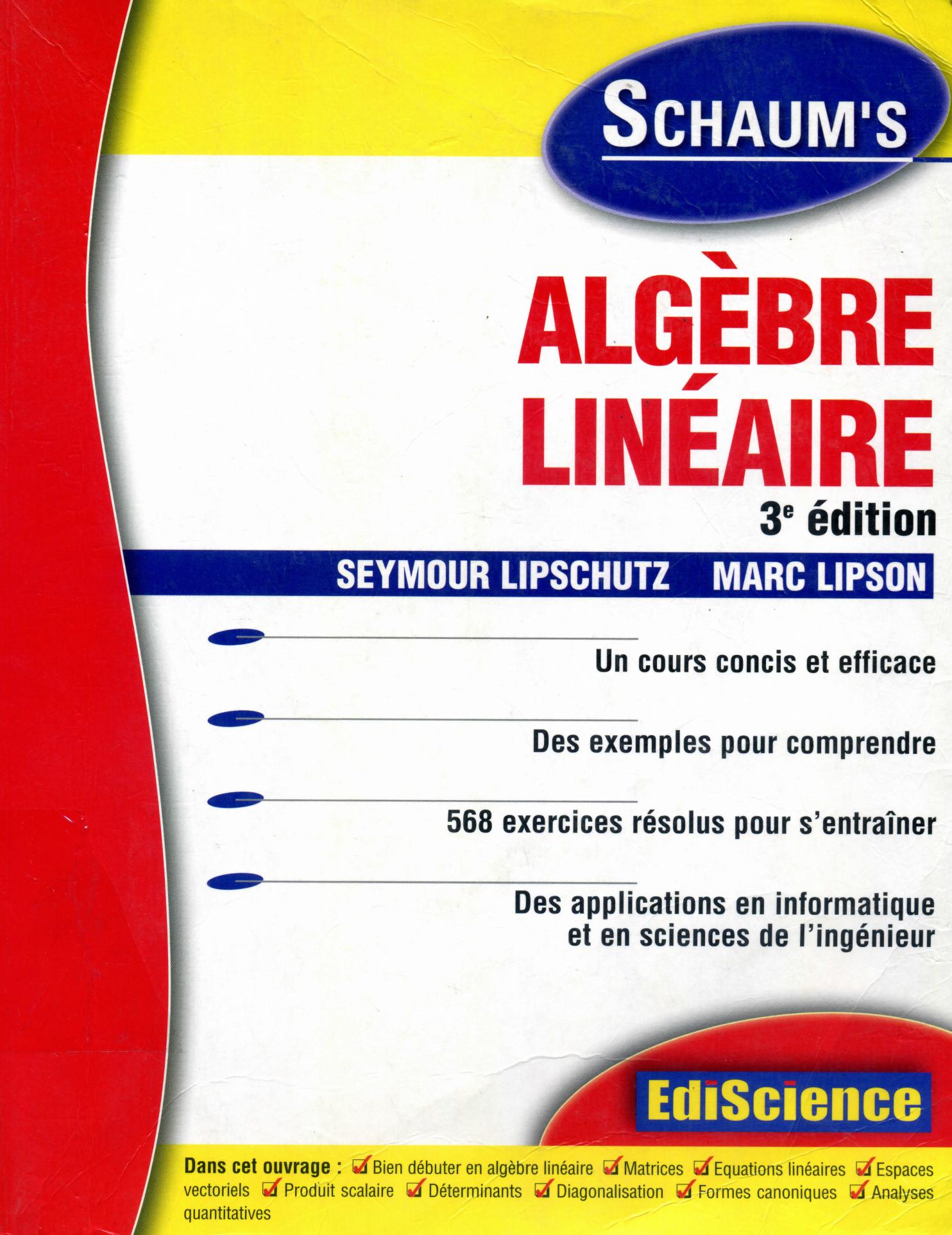 Lipschutz, S. & Lipson, M. (2003). Algèbre linéaire (3è éd) . Dunod;
