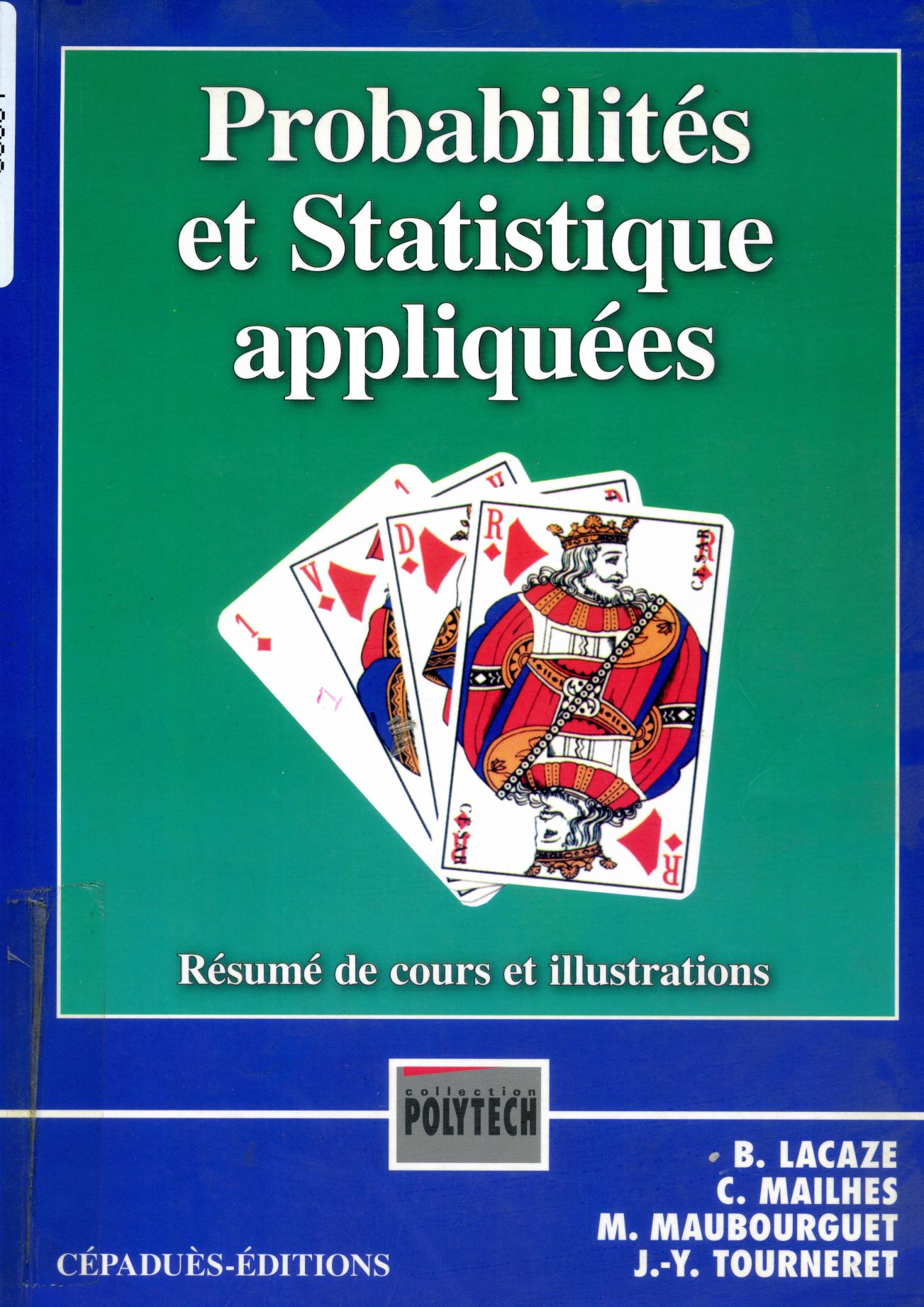 Lacaze, B. et al. (2005). Probabilités et statistiques appliquées : résumé de cours et illustration . Cépaduès;