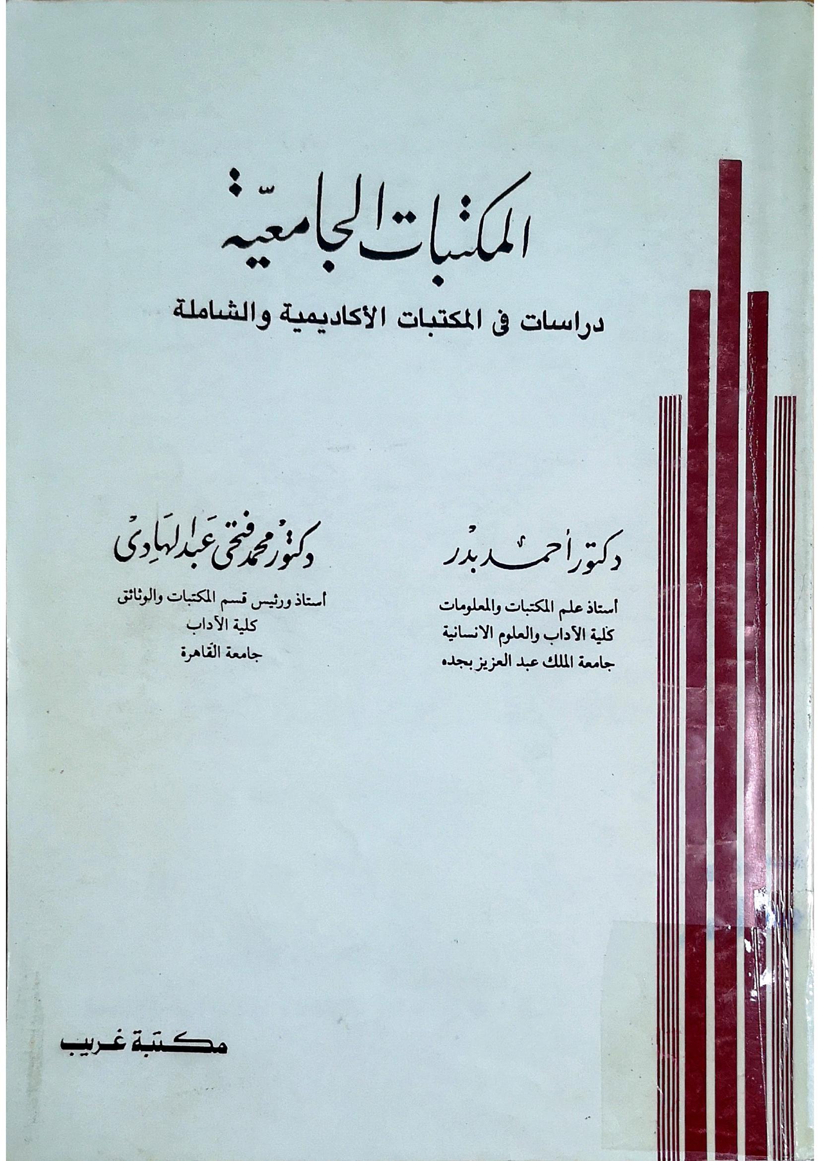 بدر, أ. & عبد الهادي, م. ([1987]). المكتبات الجامعية (ط.2. مزيدة ومنقحة) . مكتبة غريب;