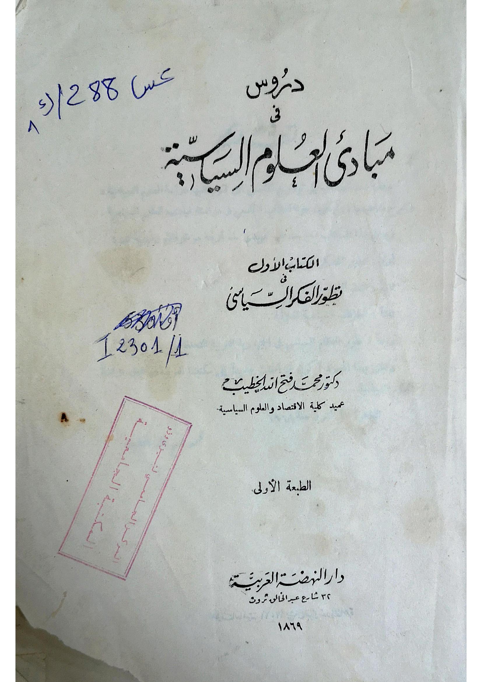 الخطيب, م. (1969). دروس في مبادئ العلوم السياسية. 1، تطور الفكر السياسي . دار النهضة العربية;