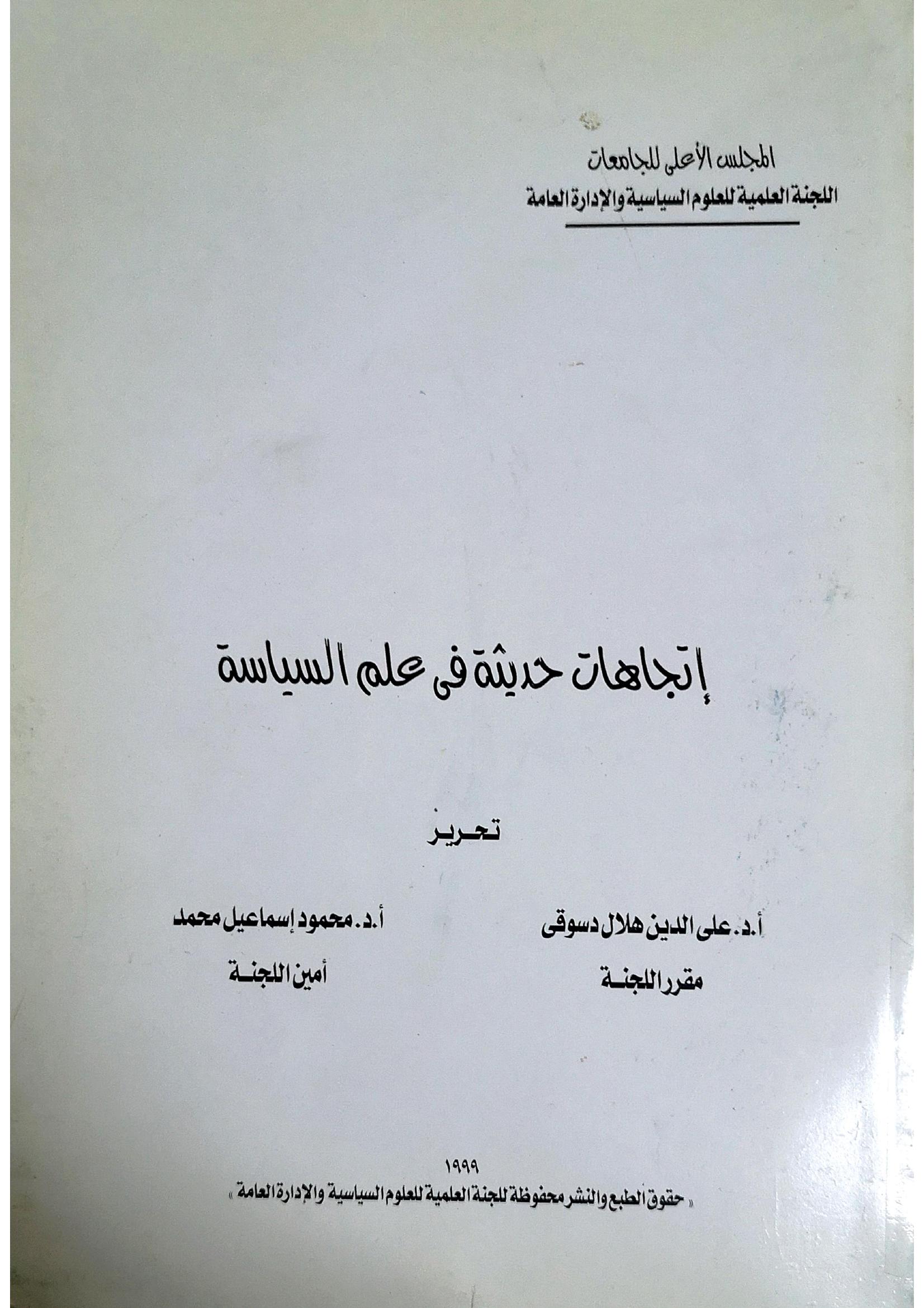 المجلس الأعلى للجامعات . اللجنة العلمية للعلوم السياسية والإدارة العامة (القاهرة) et al. (1999). إتجاهات حديثة في علم السياسة . اللجنة العلمية للعلوم السياسية والإدارة العامة;