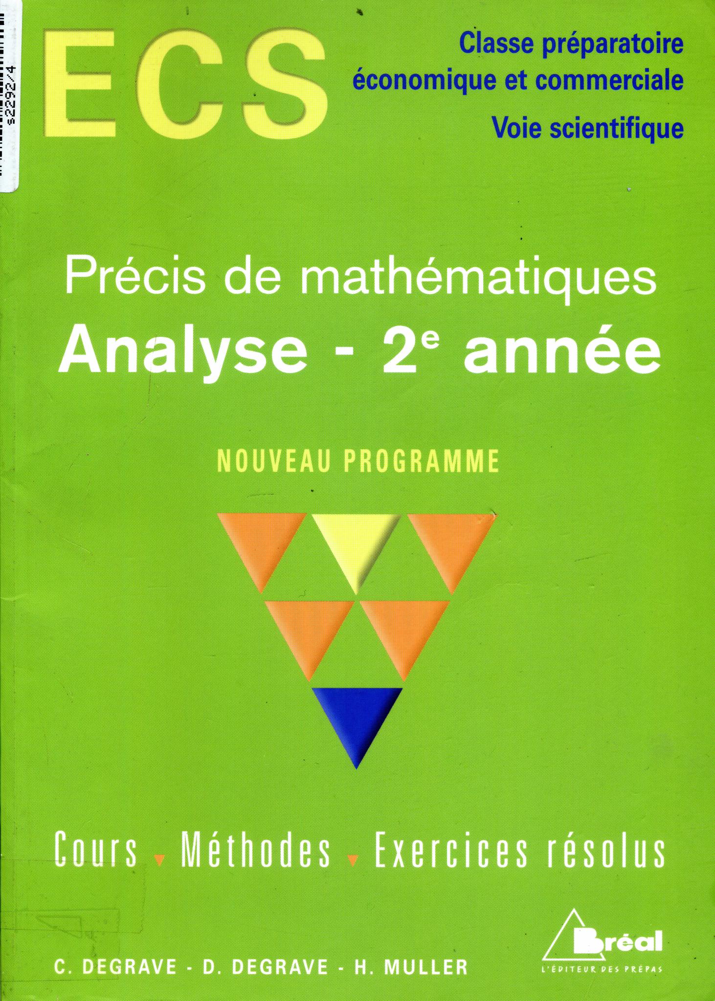 Degrave, D. et al. (2004). Précis de mathématiques : analyse 2ème année . Bréal;