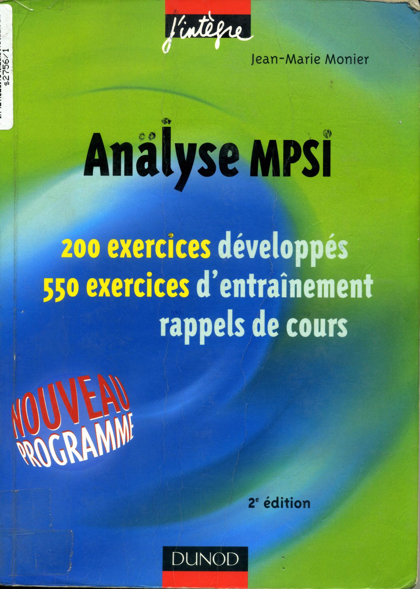Monier, J. (2003). Analyse MPSI (2è éd.) . Dunod;