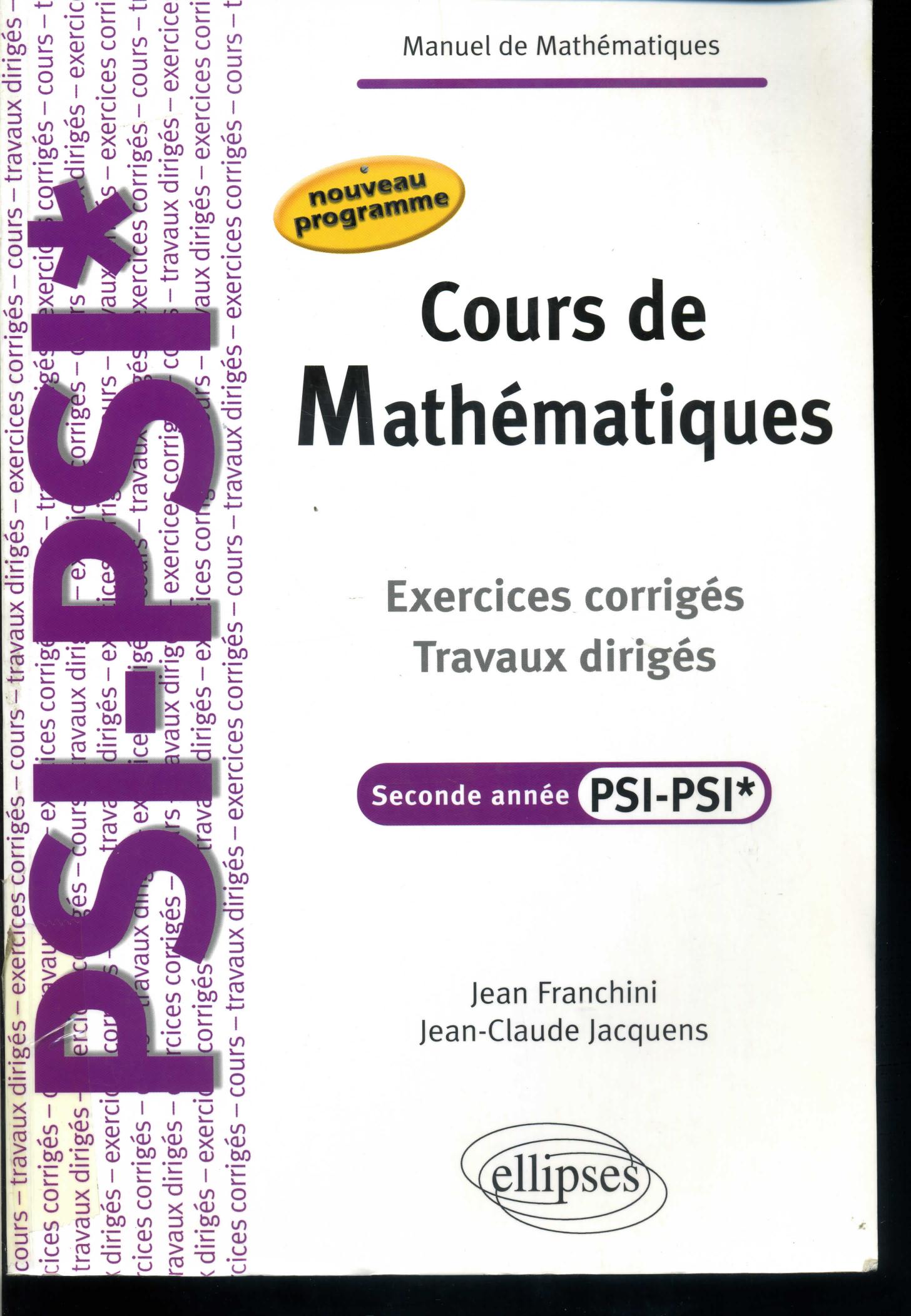 Franchini, J. & Jacquens, J. (2004). Cours de mathématiques: exercices corrigés, travaux dirigés . Ellipses;
