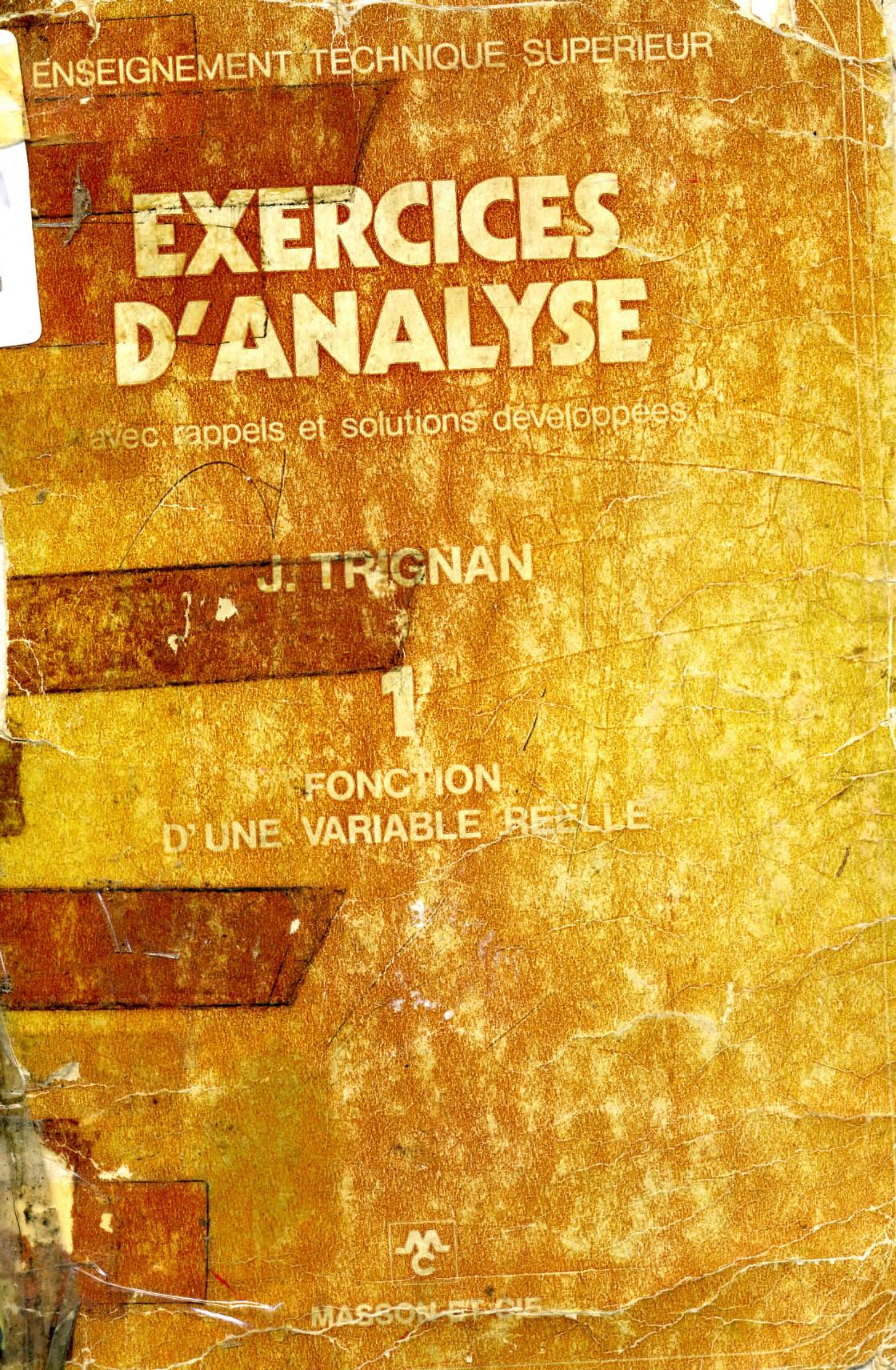 Trignan, J. ([1972]). Exercices d'analyse avec rappels et solutions développées. 1, Fonction d'une variable réelle . Masson;