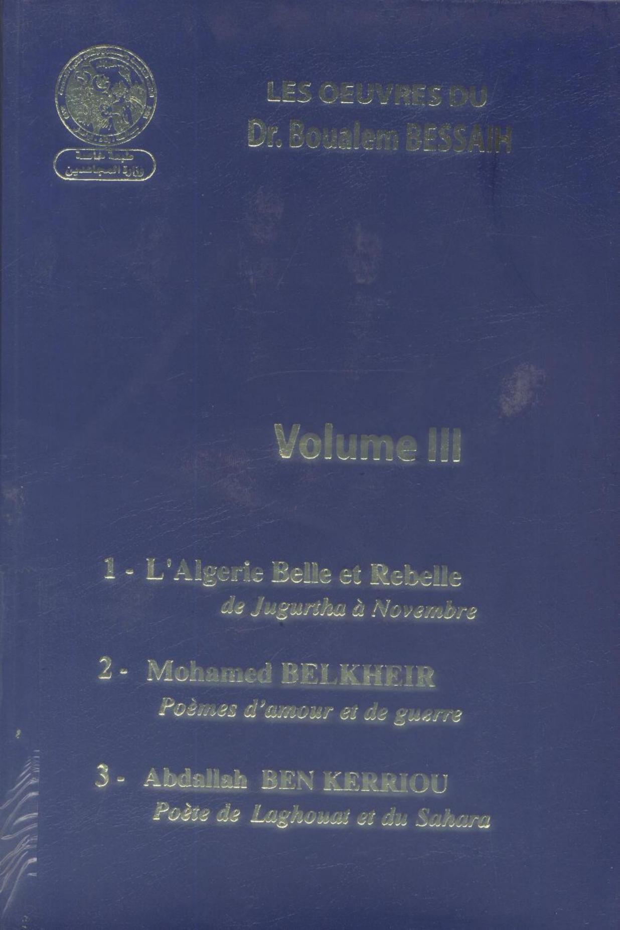 Les oeuvres du Dr. Boualem Bessaih. Vol 3. 1, L'Algérie belle et rebelle : de Jugurtha à novembre. 2, Mohamed Belkheir : poèmes d'amour et de guerre. 3, Abdallah Ben Kerriou : poète de Laghouat et du Sahara