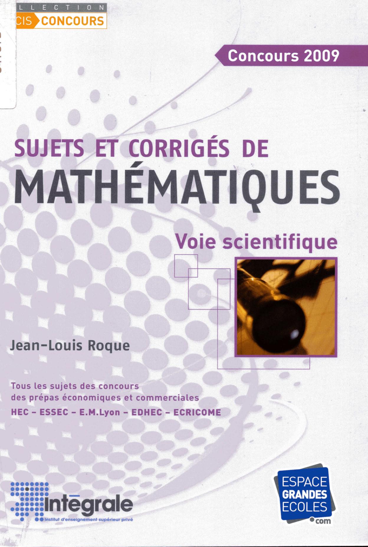Roque, J. (2010). Concours 2009 : sujets et corrigés de mathématiques : voie scientifique . Espace grandes écoles;
