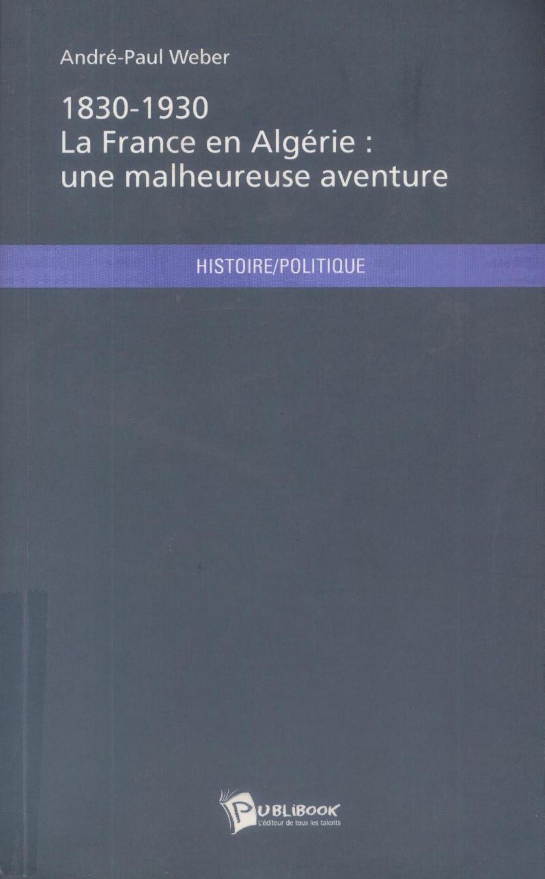 Weber, A. (2010). 1830-1930 [Mille huit cent trente - mille neuf cent trente] La France en Algérie : une malheureuse aventure . Editions Publibook;