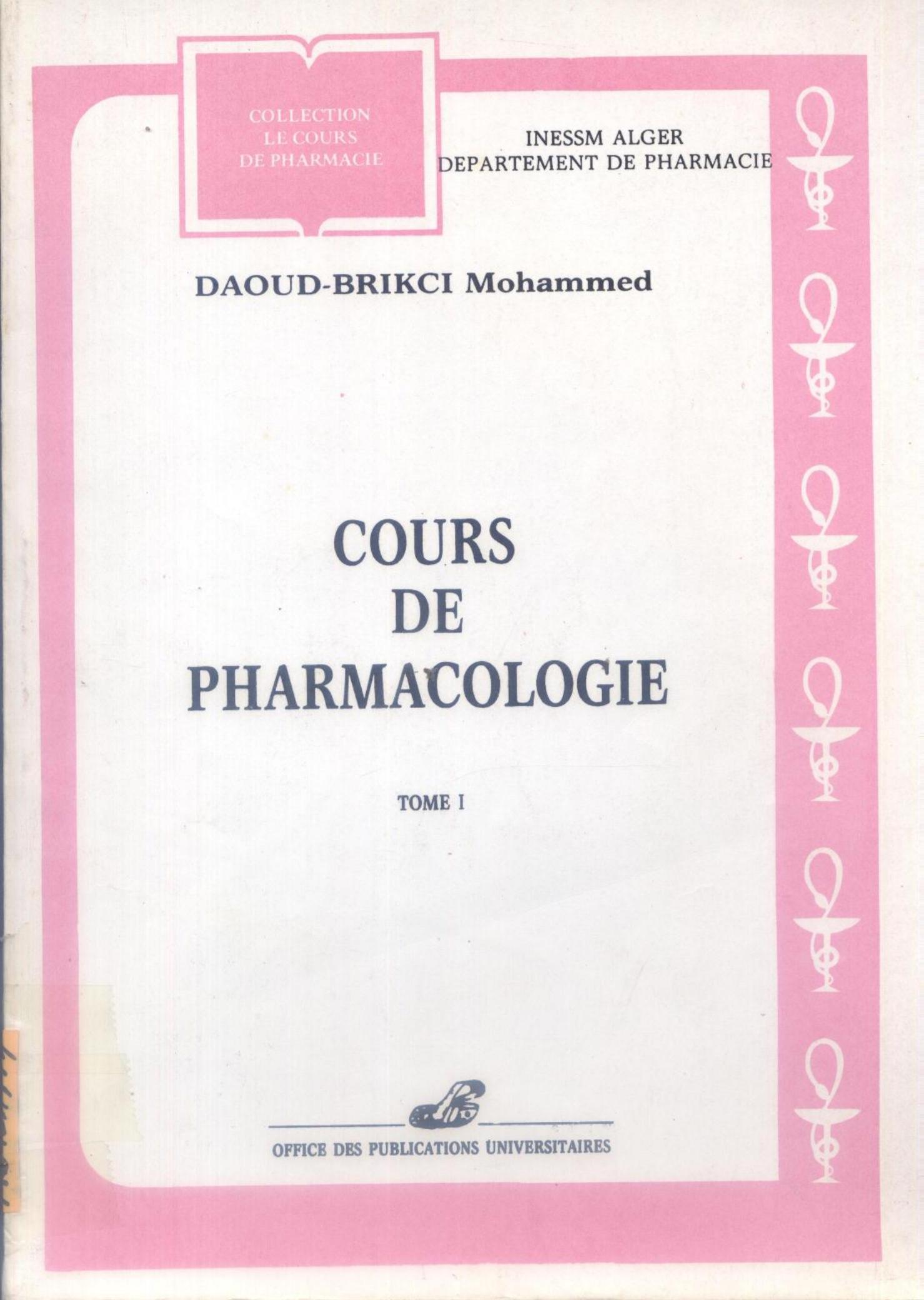 Département de pharmacie (Algérie) & Daoud-Brikci, M. (1990). Cours de pharmacologie. 1 . OPU;