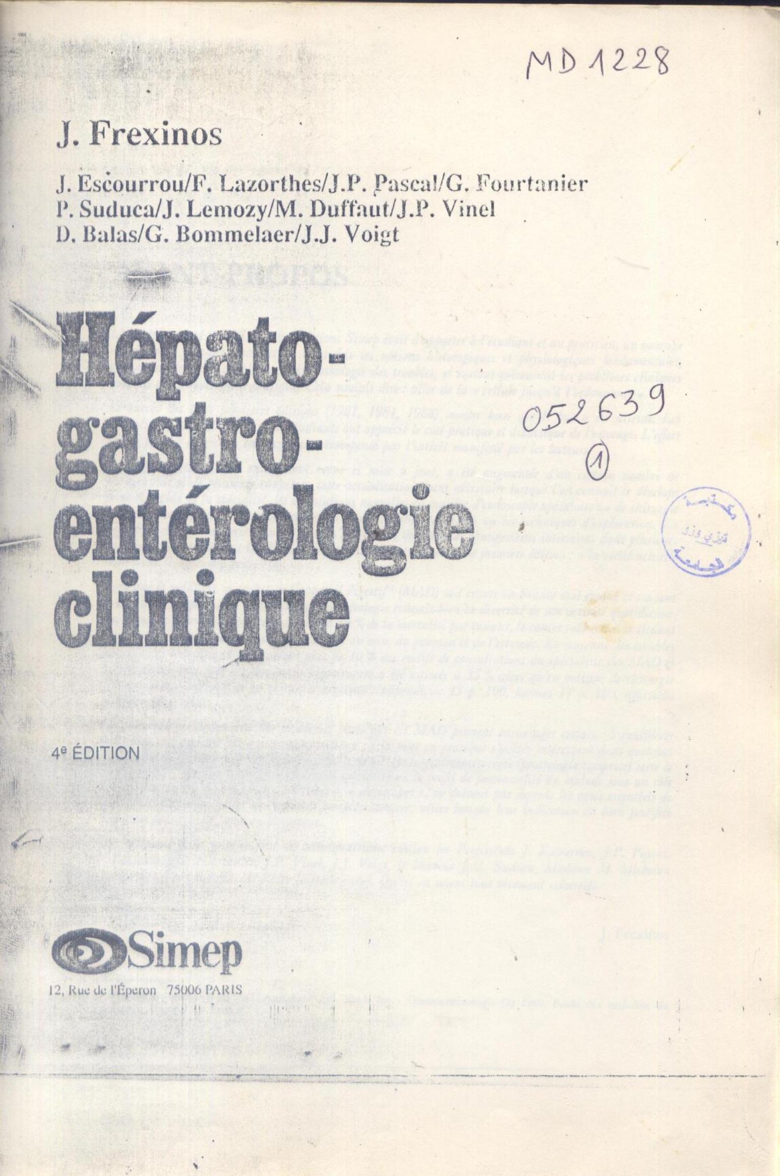 Frexinos, J. et al. (s.d.). Hépato-gastro-entérologie clinique (4è éd.) . Simep;
