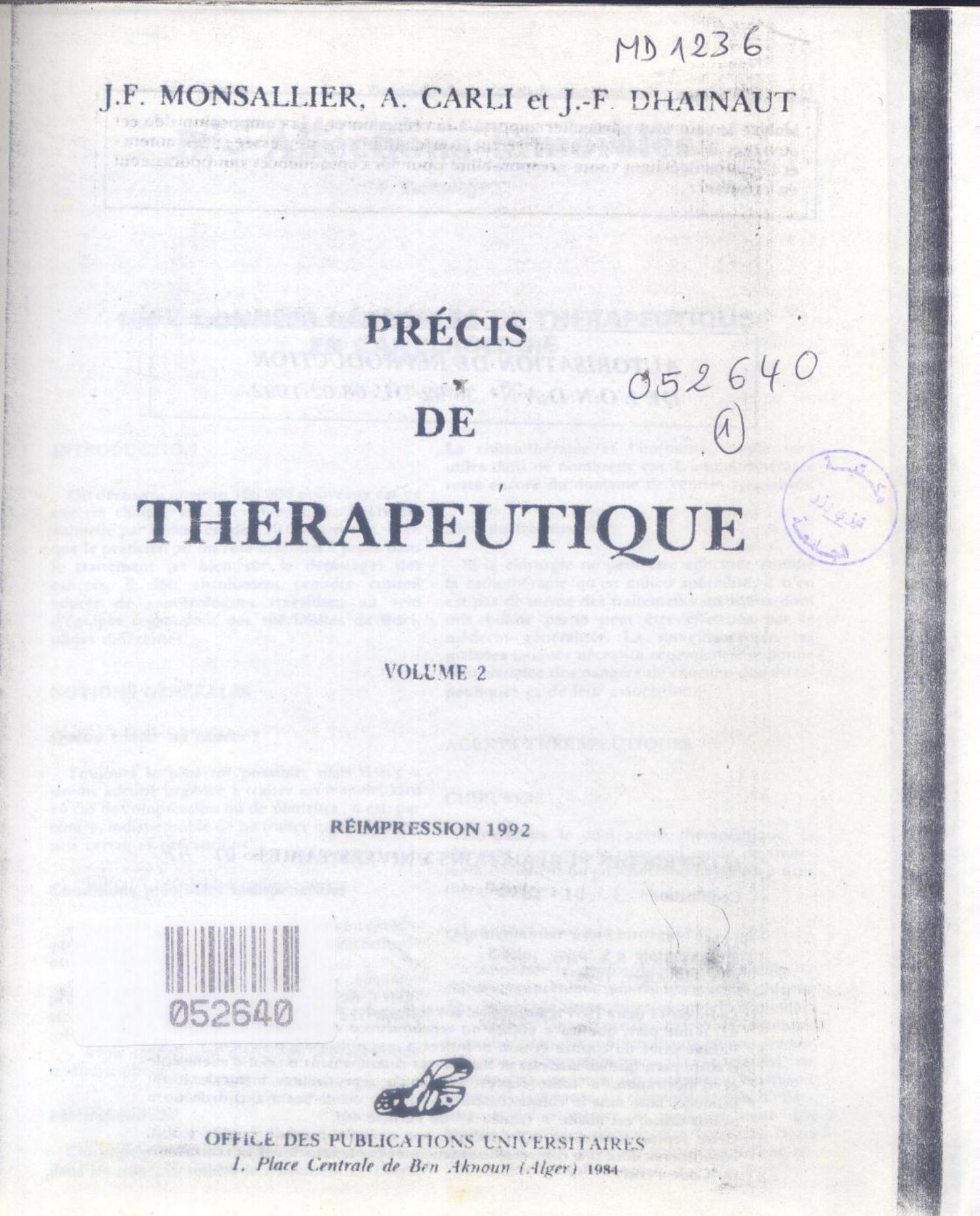 Monsallier, J. et al. (1984). Précis de thérapeutique. 2 . OPU;