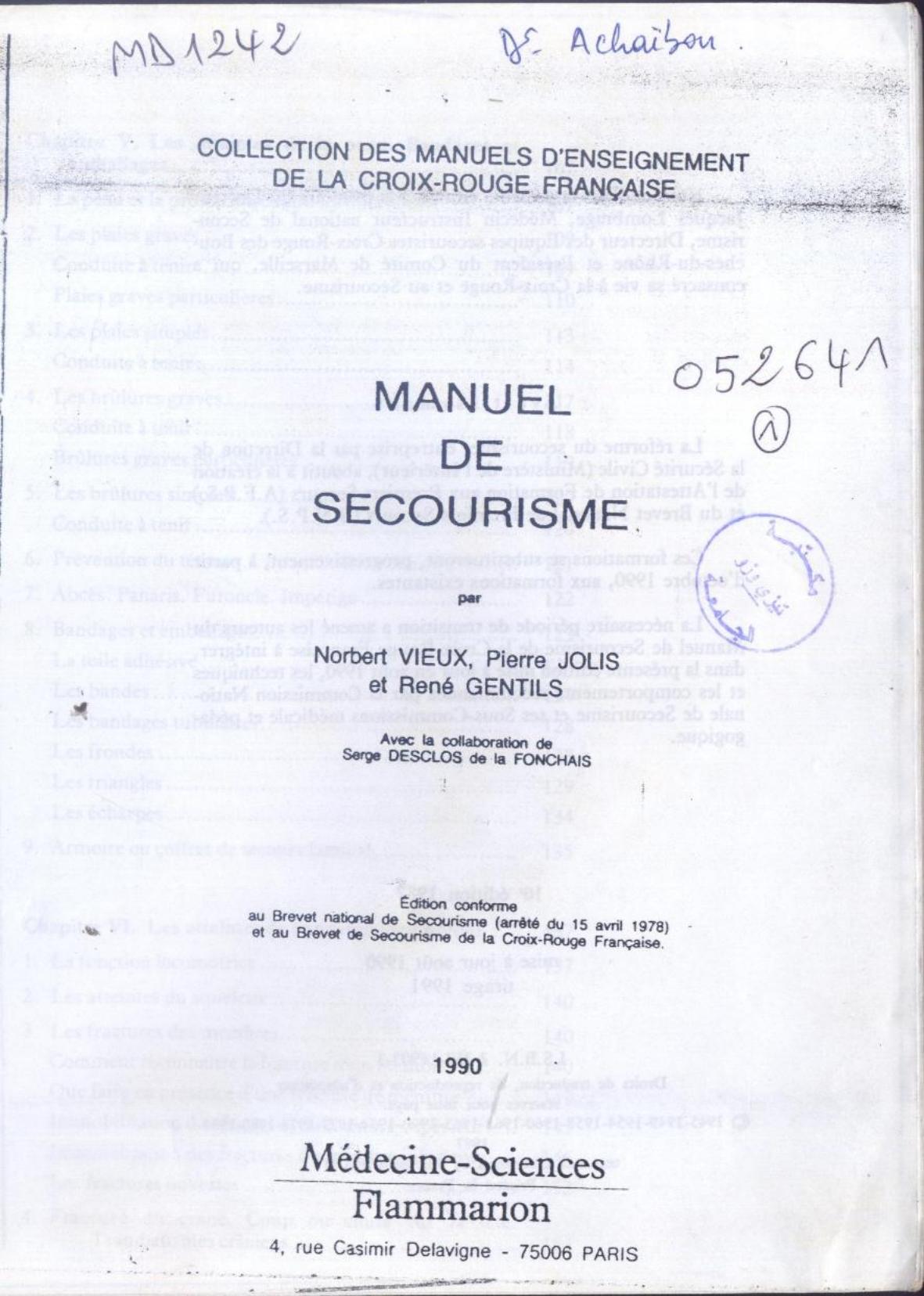 Vieux, N. et al. (1990). Manuel de secourisme . Médecine-Sciences Flammarion;