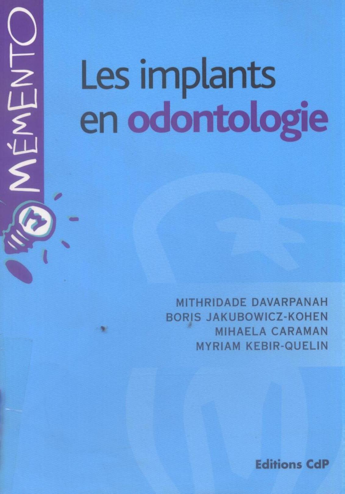 Davarpanah, M. et al. (2010). Les implants en odontologie . Wolters Kluwer France;